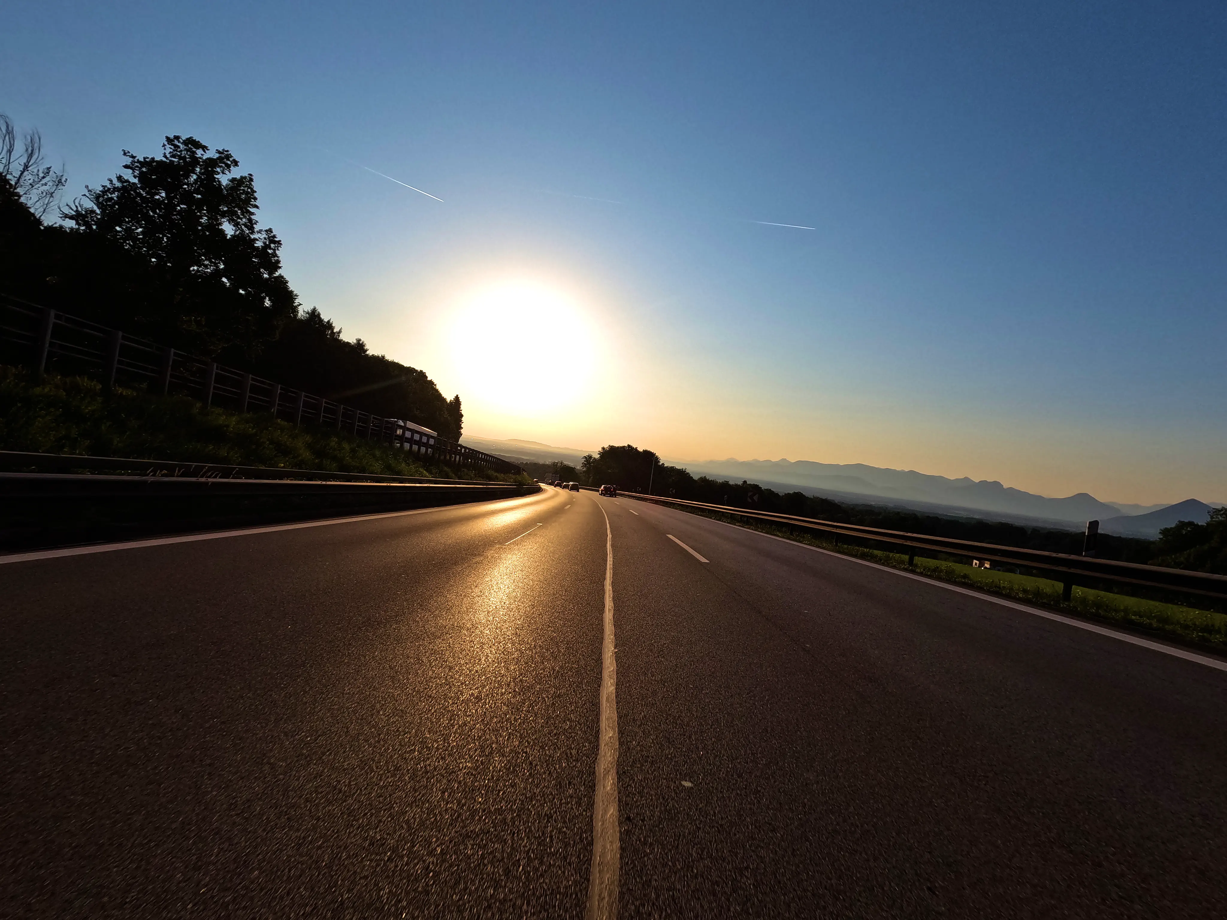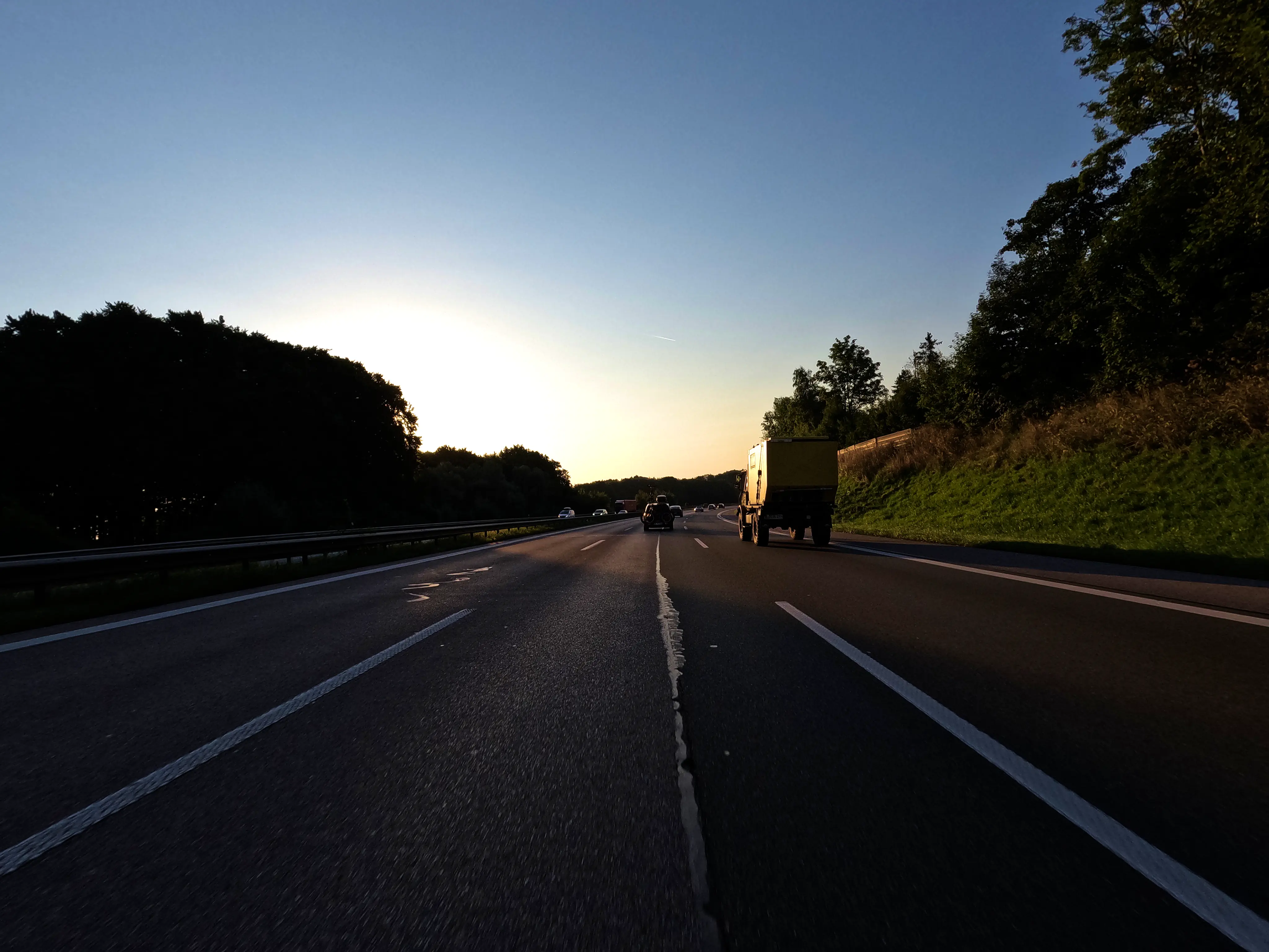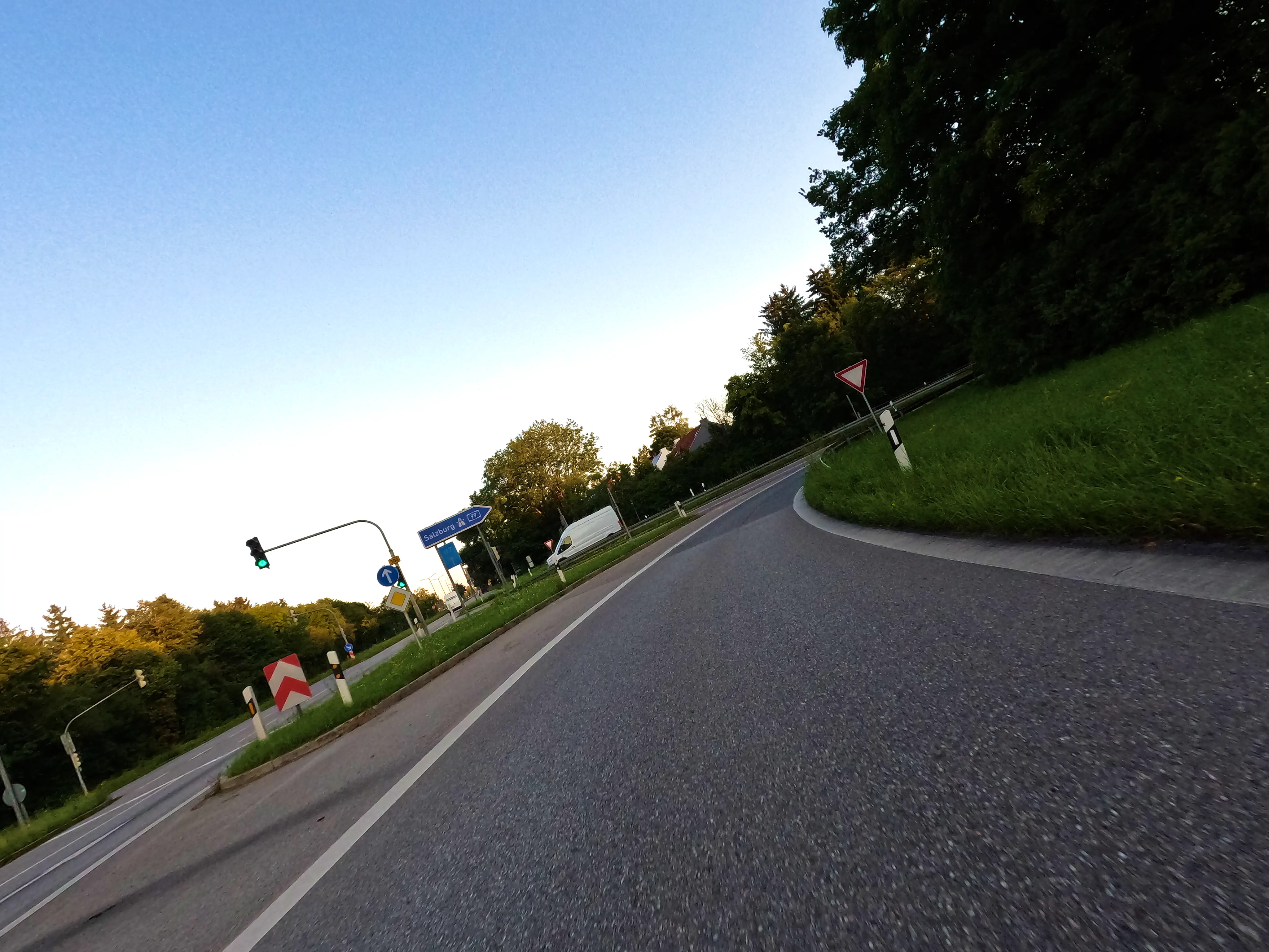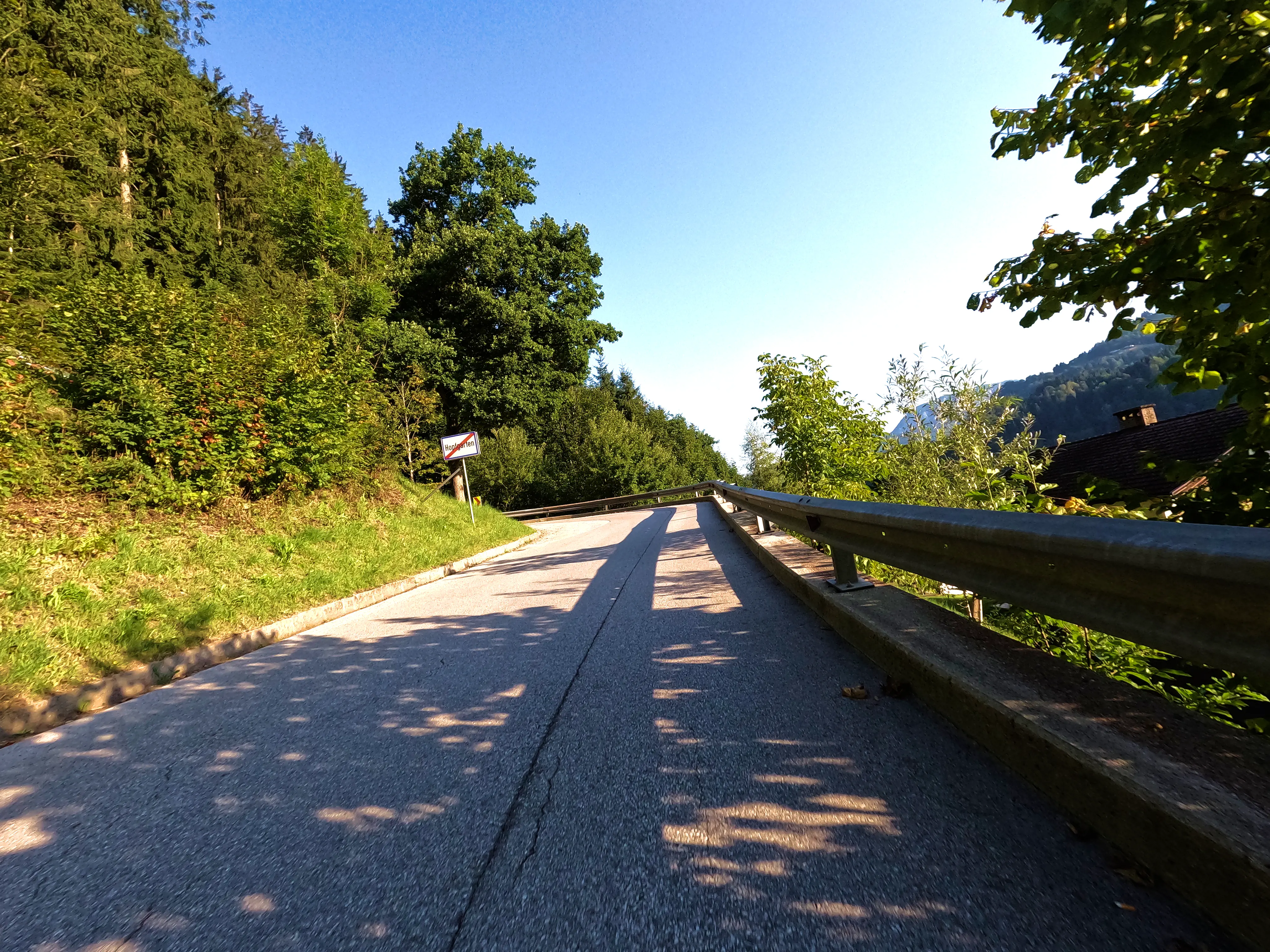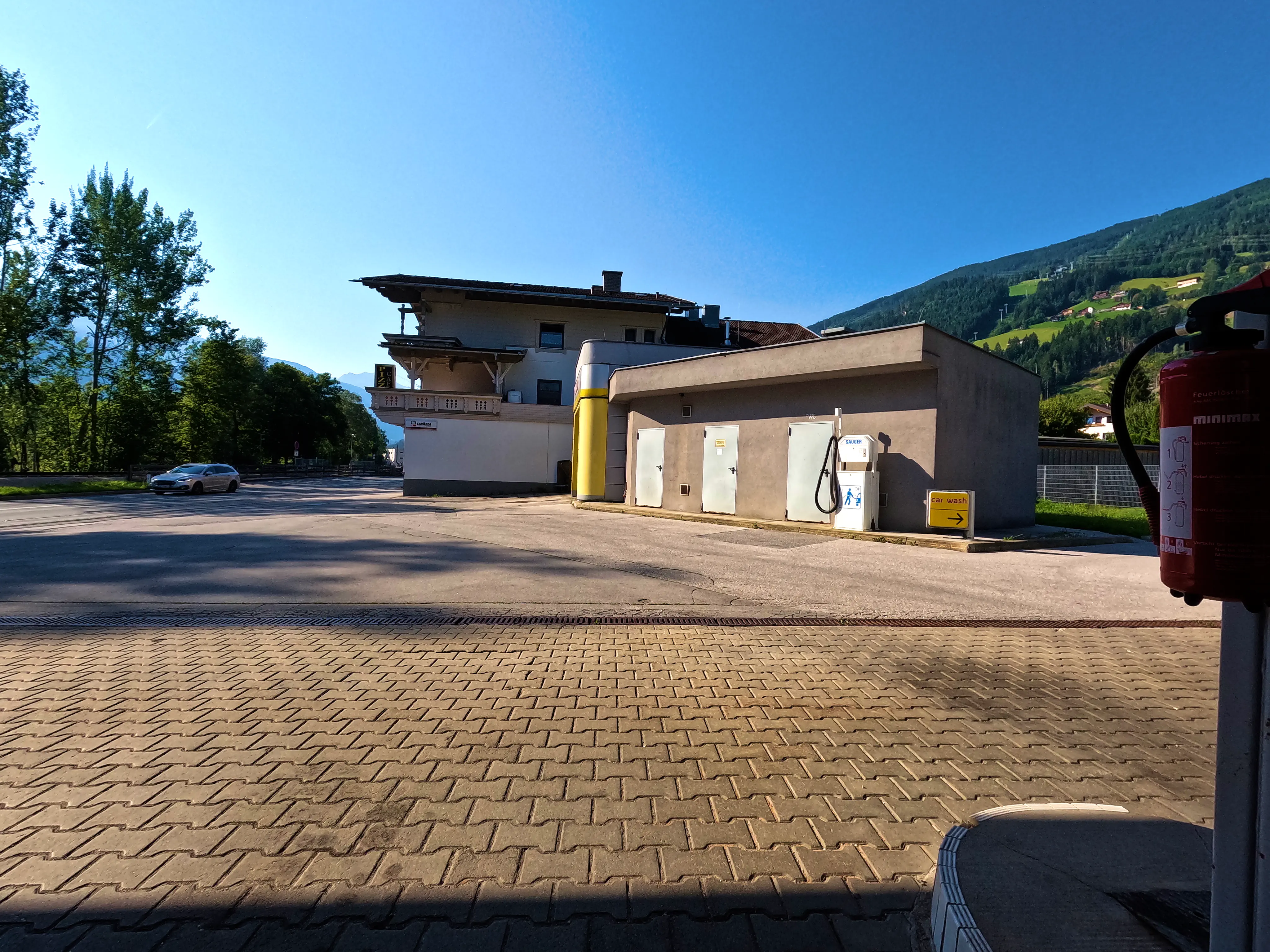 Ich startete die Bolt gegen halb sieben und fuhr direkt zur Autobahn-Auffahrt. Knapp 500 Kilometer hatte ich für diesen Tag geplant, bis Kufstein wollte ich schnell vorankommen und nahm daher den Weg über die A99, A8 und A93. Als ich den Irschenberg überquerte, stand die Sonne tief und tauchte die Landschaft in herrlich warmes Licht. Scheinbar waren zu diesem Zeitpunkt auch auf österreichischer Seite Container für Grenzkontrollen aufgebaut, diese wurden an diesem Samstag jedoch nicht genutzt. Ohne mautpflichtig geworden zu sein verließ ich die Autobahn schließlich bei Kufstein-Süd.