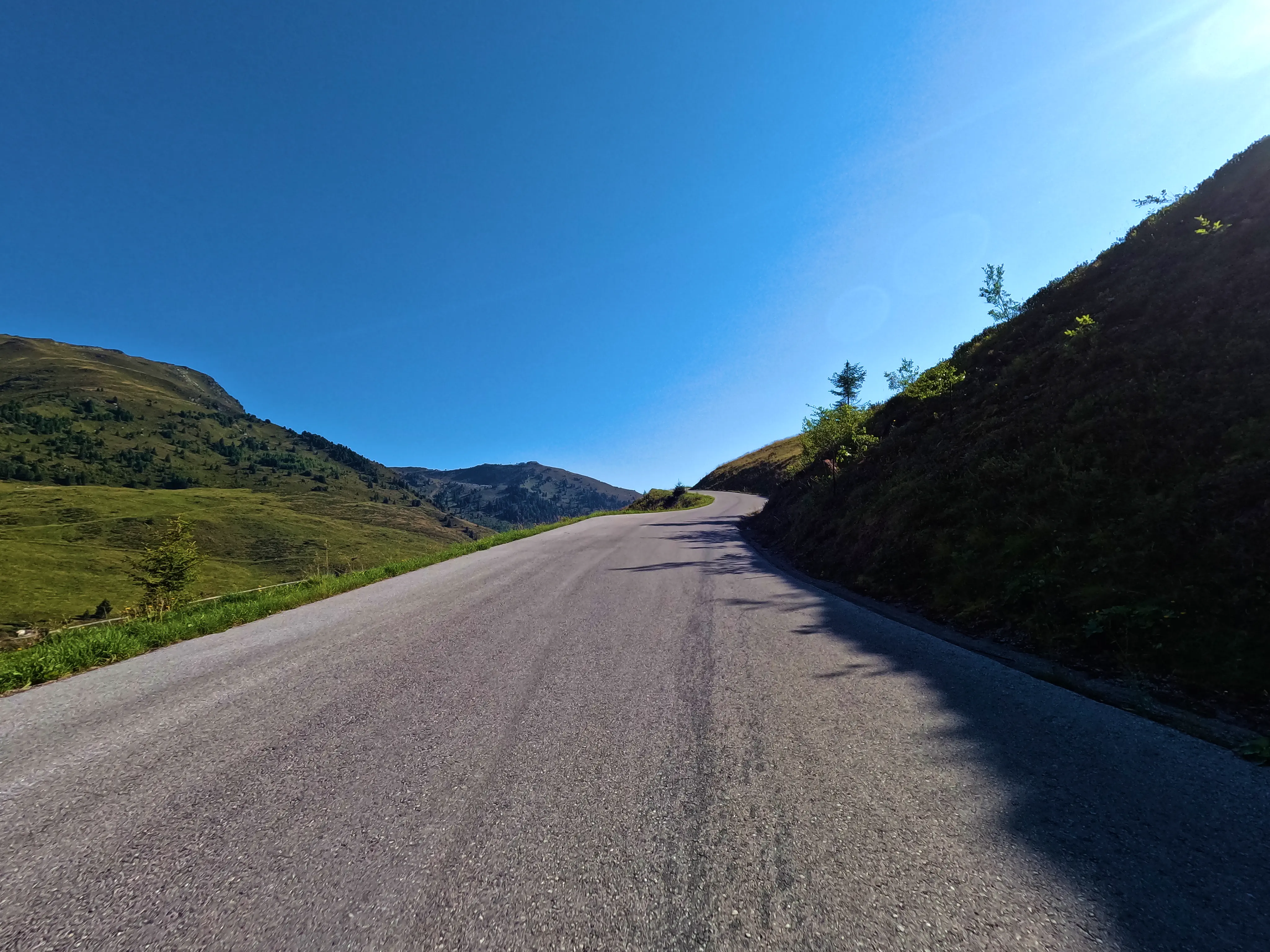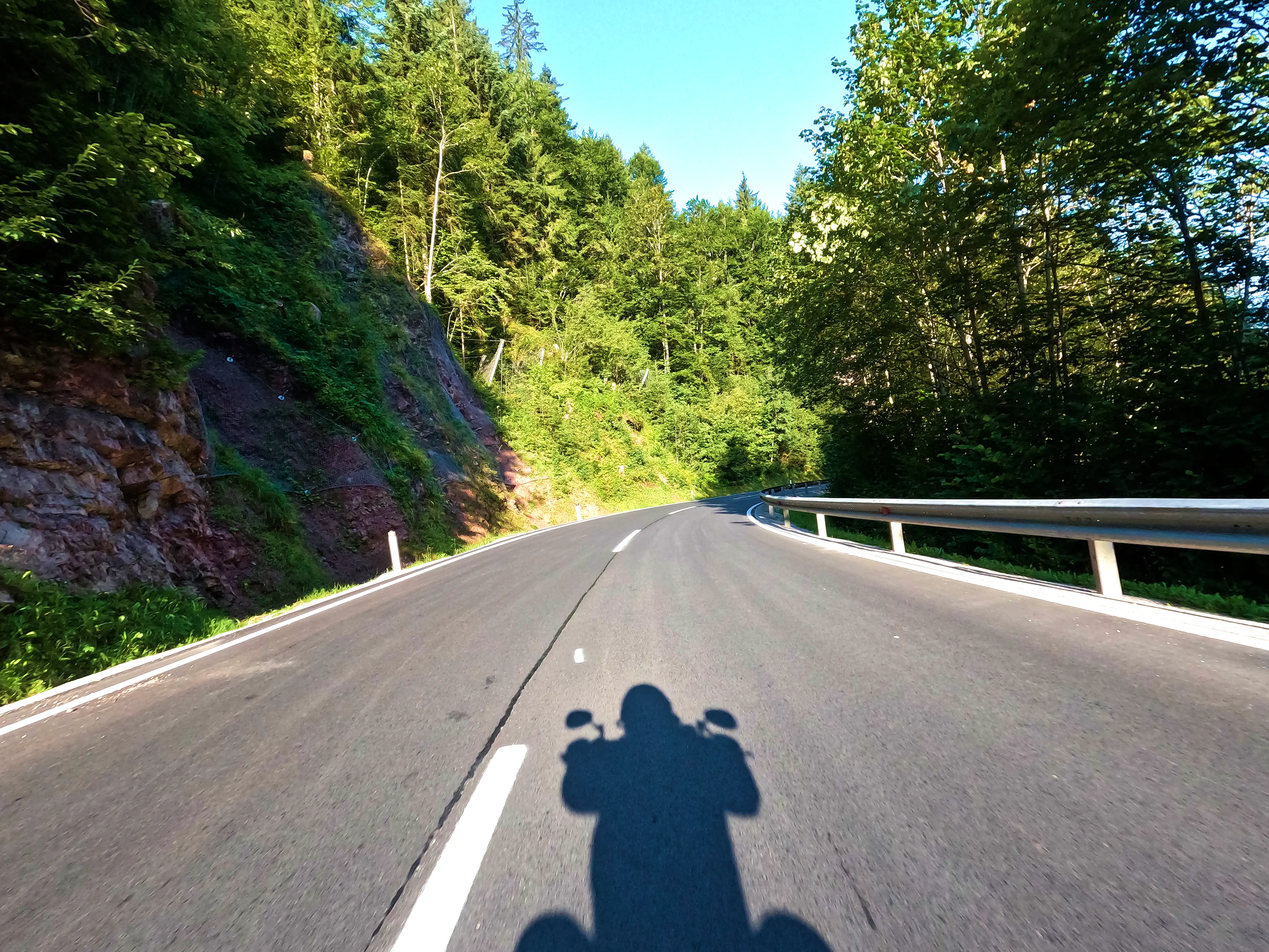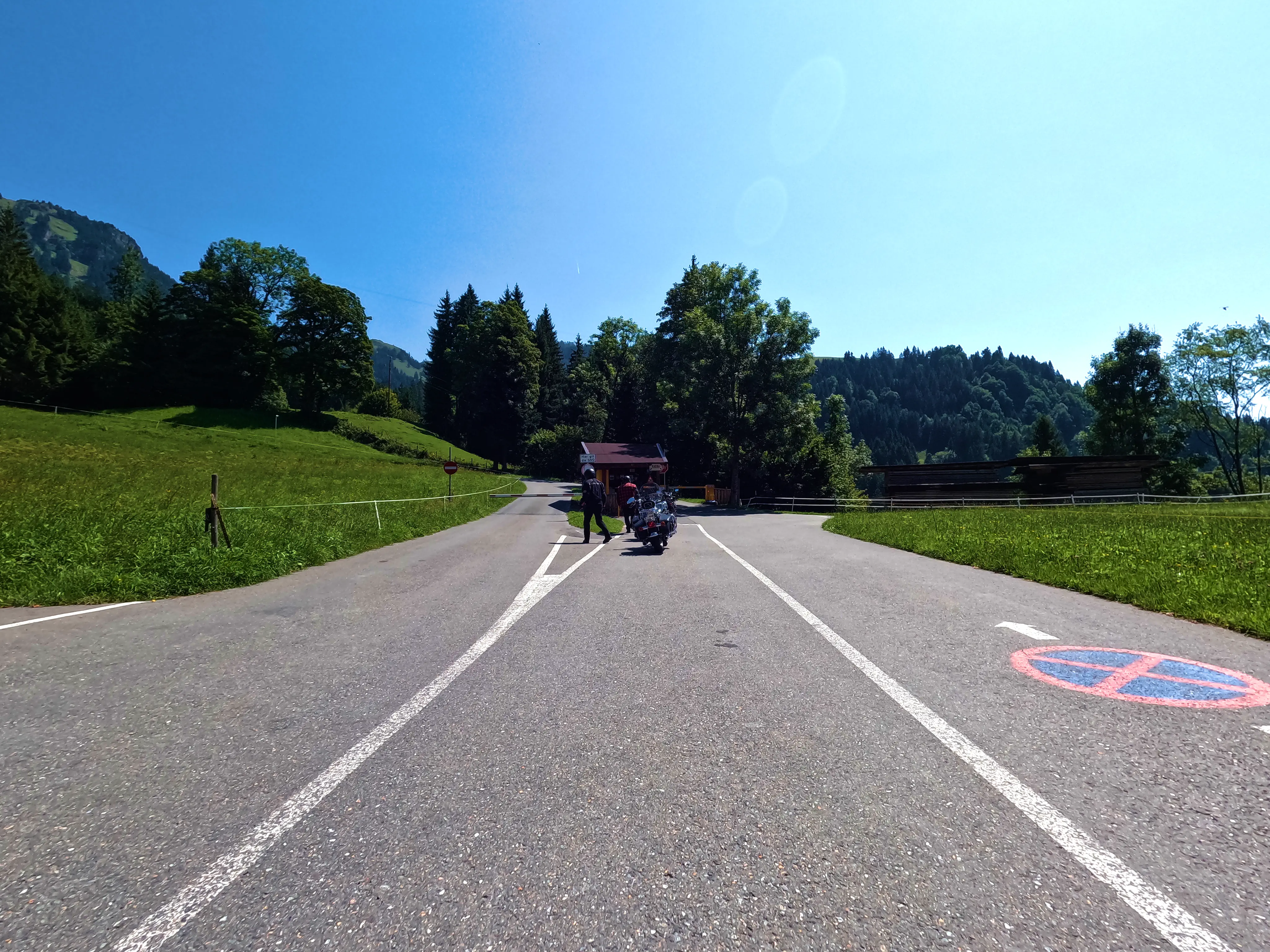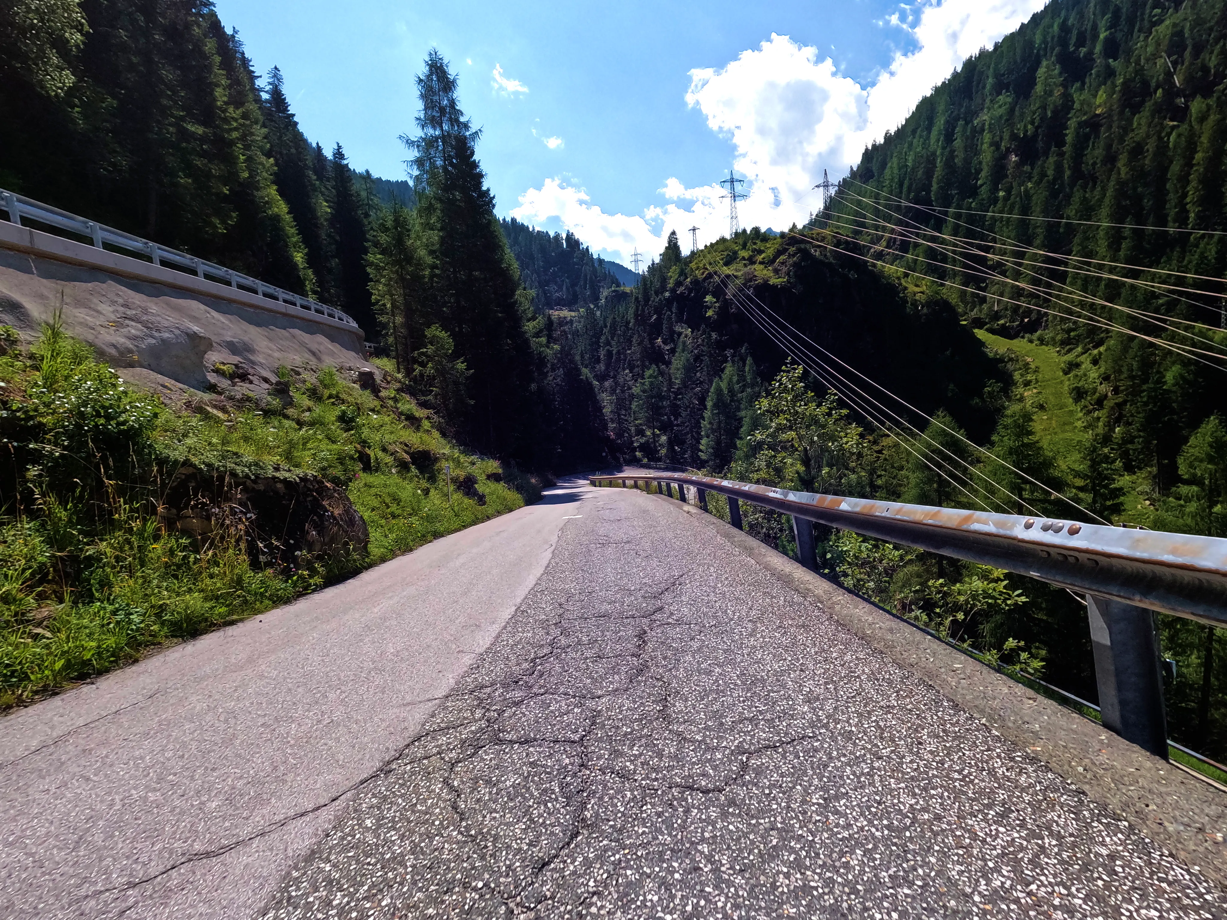 Ich verließ das Zillertal über den Gerlospass Richtung Osten. Auf der B165 kam mir zuerst eine Gruppe Kleinkrafträder bzw. Mopeds entgegen, die schienen auch Spaß zu haben - allerdings bremsten sie den Verkehr doch etwas aus. Egal, ich war ja schließlich in der entgegengesetzten Richtung unterwegs. Und auch wenn die B165 manchmal etwas anstrengend ist, ich war wohl noch früh genug dran oder hatte gerade eine günstige Zeit erwischt. Jedenfalls war nicht besonders viel los, ich konnte gemütlich fahren, ohne ständig hinter Autos zu kleben. Ich fuhr die Mautstation am neuen Gerlospass an, machte mein Nachweisbild und drehte wieder um, um die alte Gerlosstraße Richtung Osten zu fahren. Bei Königsleiten befuhr ich schließlich die alte Gerlosstraße, welche mich zuerst zum sechsten Passknacker-Punkt des Tages, anschließend zu einigen schönen Fotospots und schließlich ins Pinzgau brachte.