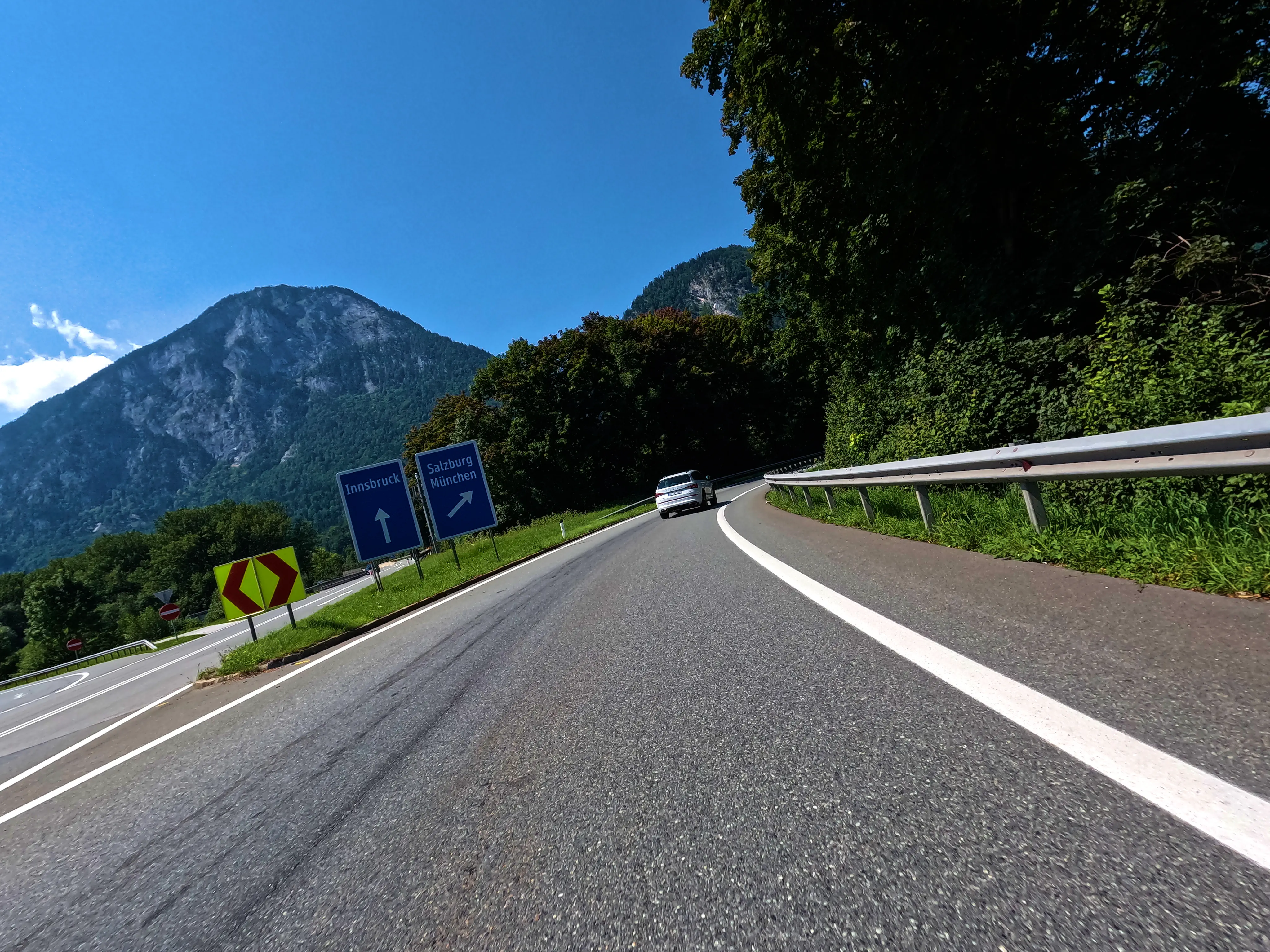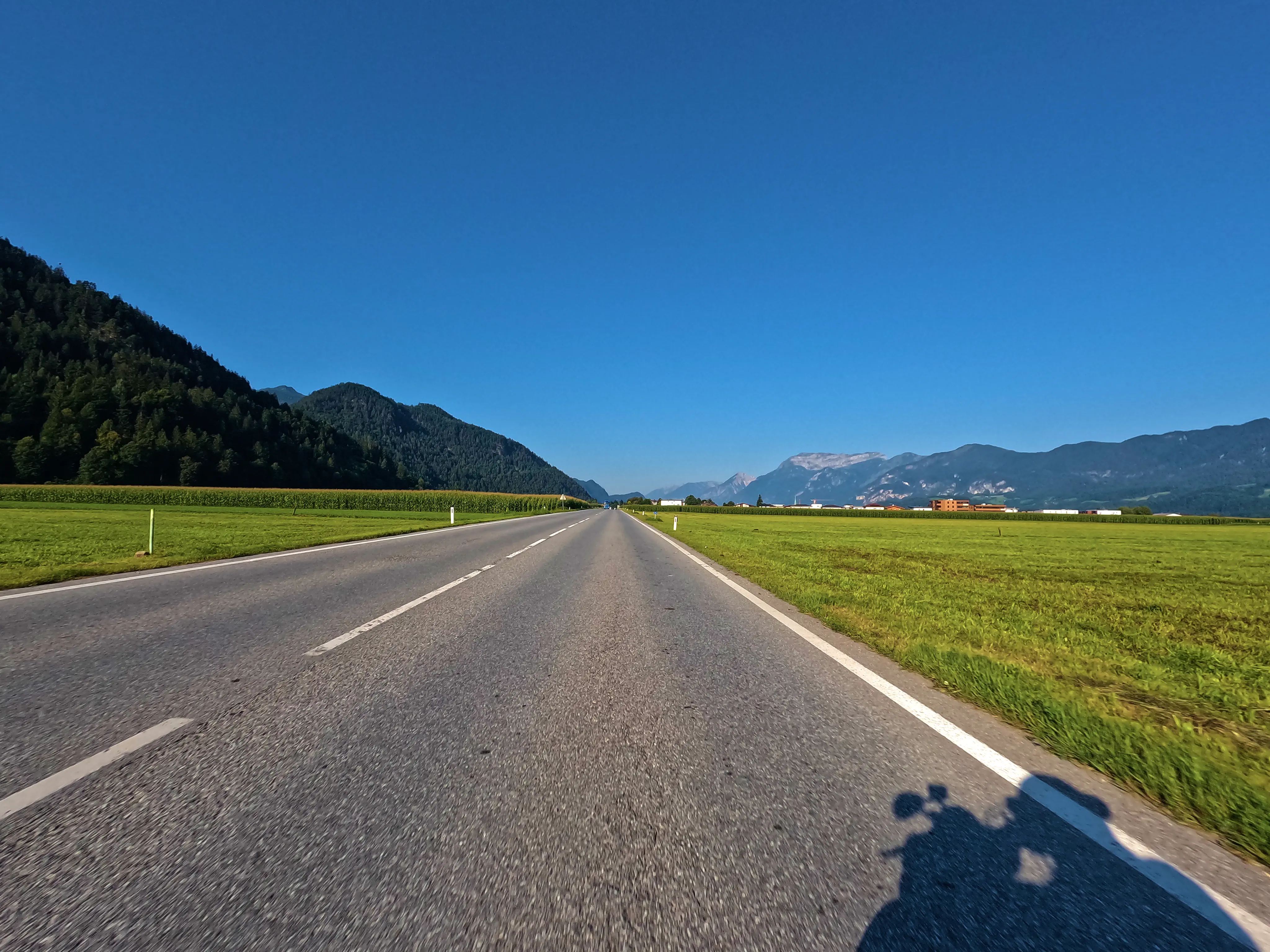 Nun begann der Heimweg. Von Sankt Johann ging es vorbei am Wilden Kaiser bis kurz vor Söll, aber hier nahm ich die B173 zurück nach Kufstein und ab dort wieder die Autobahn. Es war inzwischen sehr warm, ich hatte bereits knapp 400 Kilometer hinter mir, also ging es auch zurück über die Autobahn.