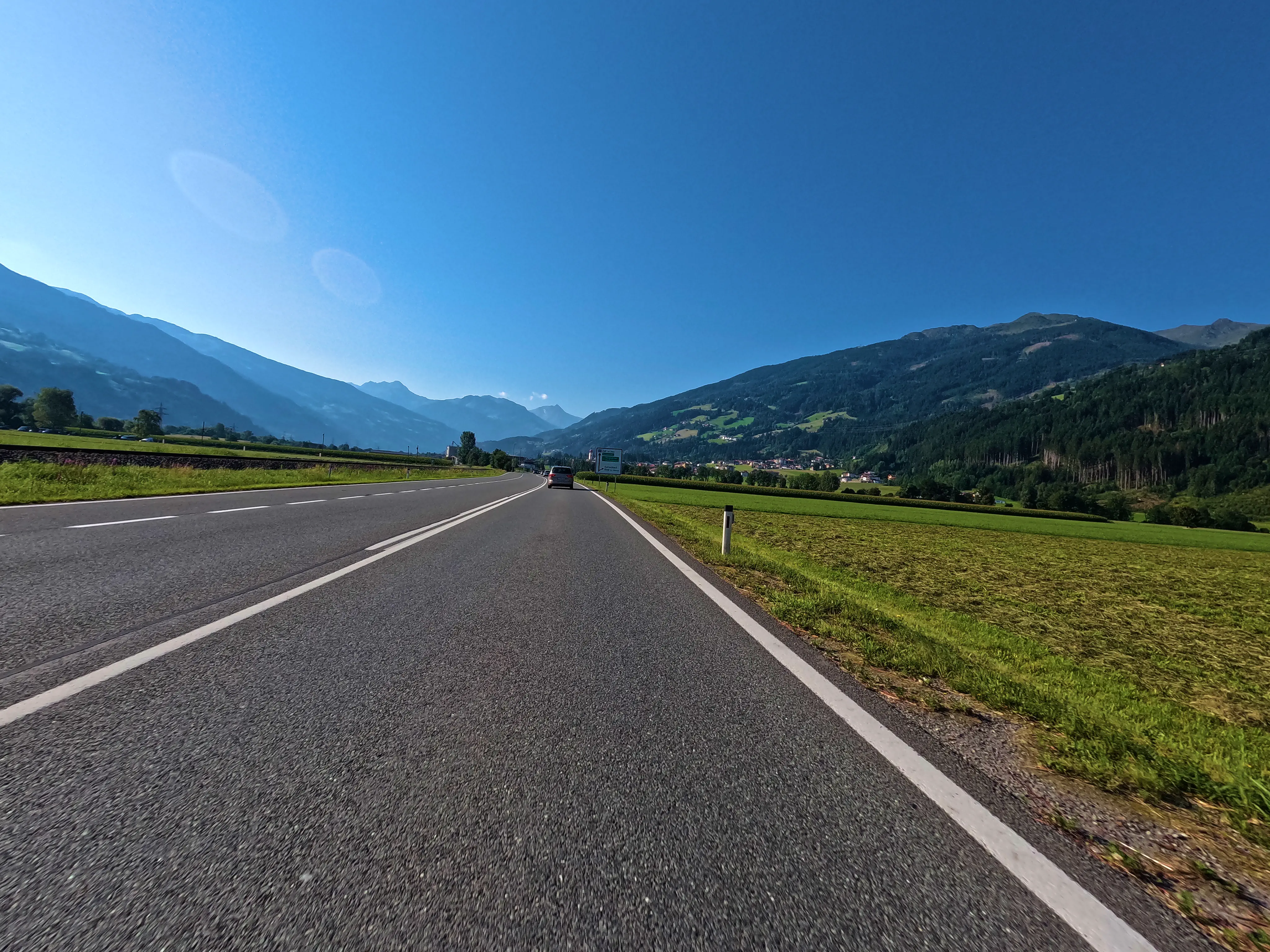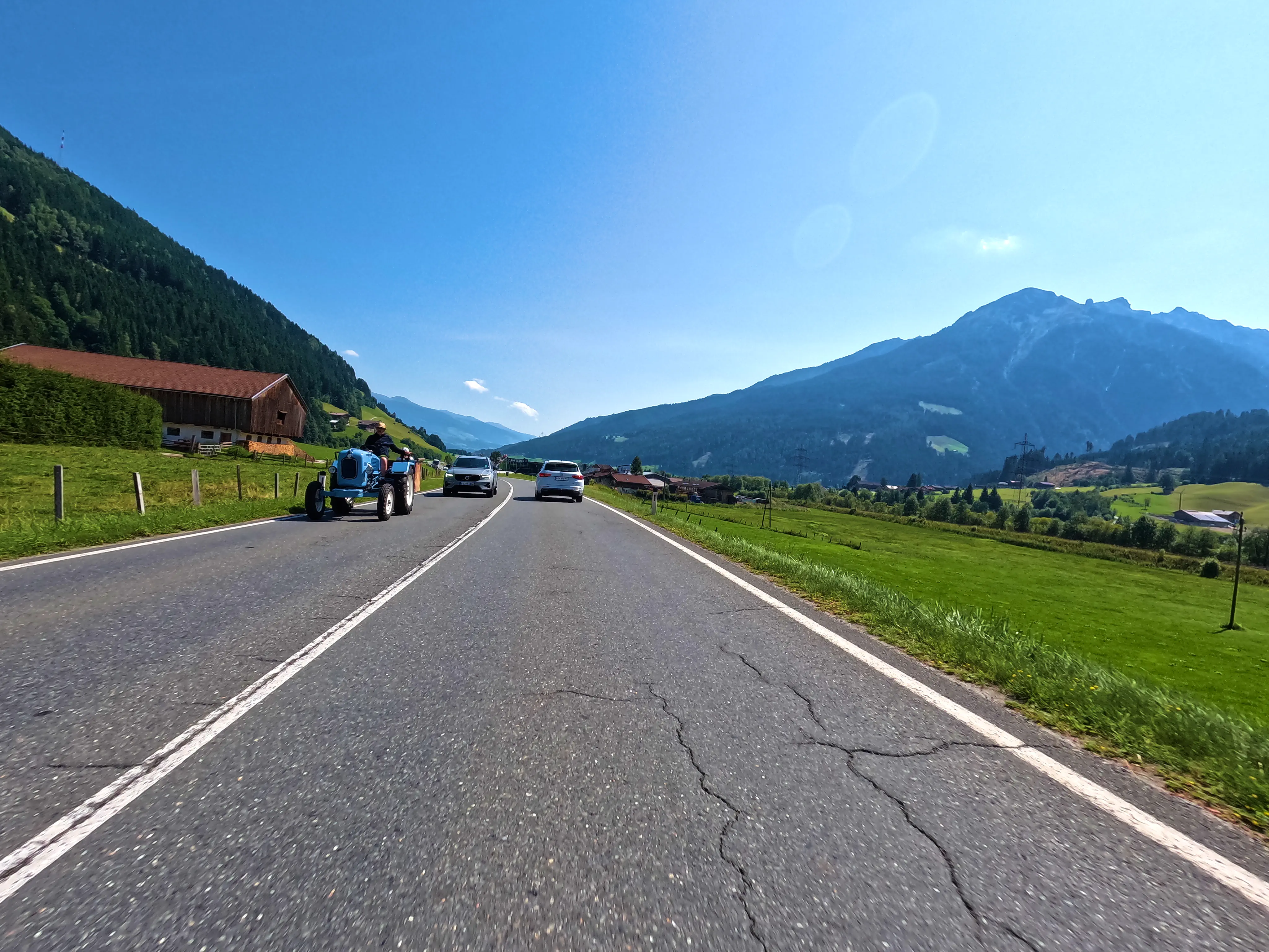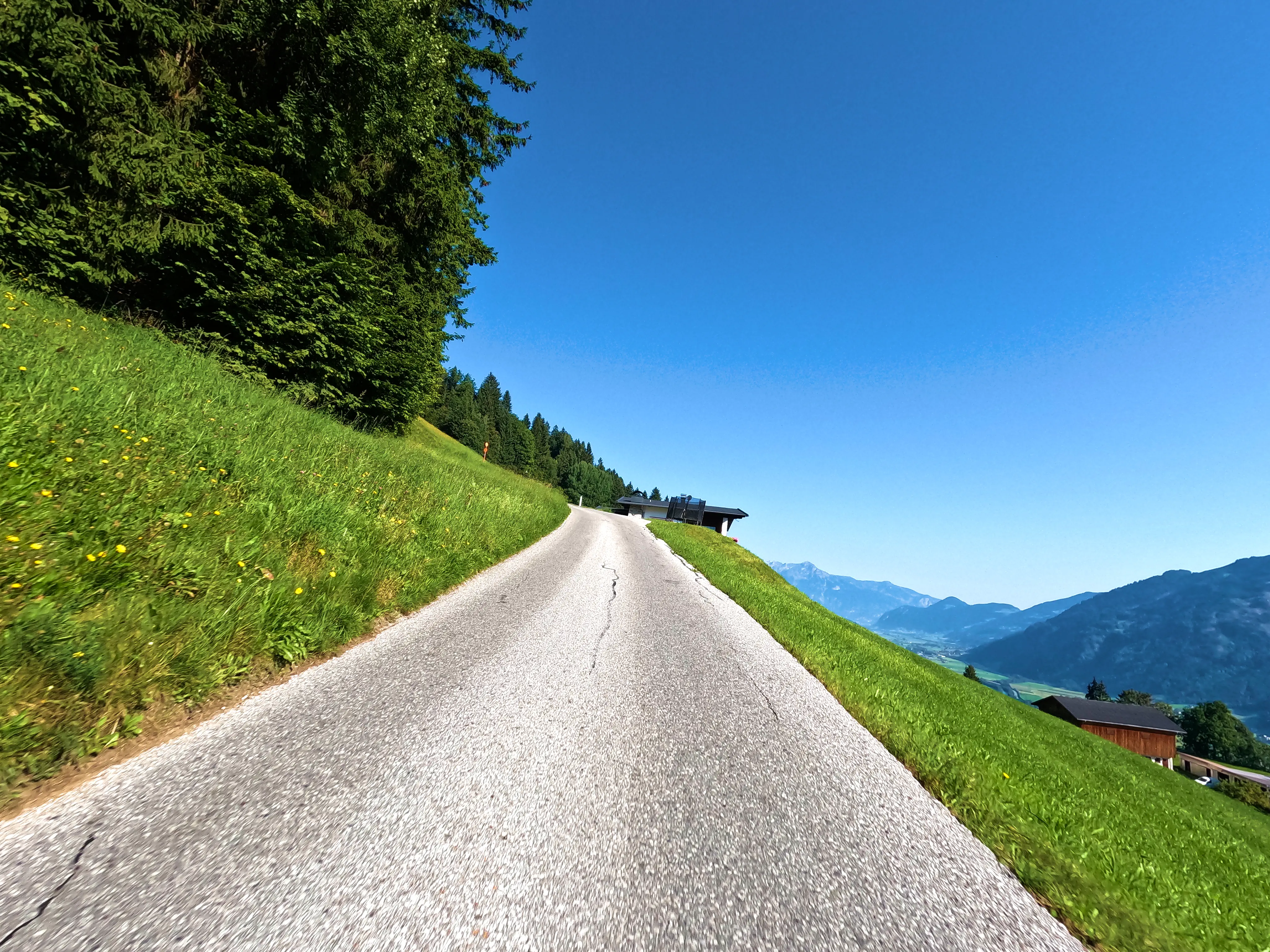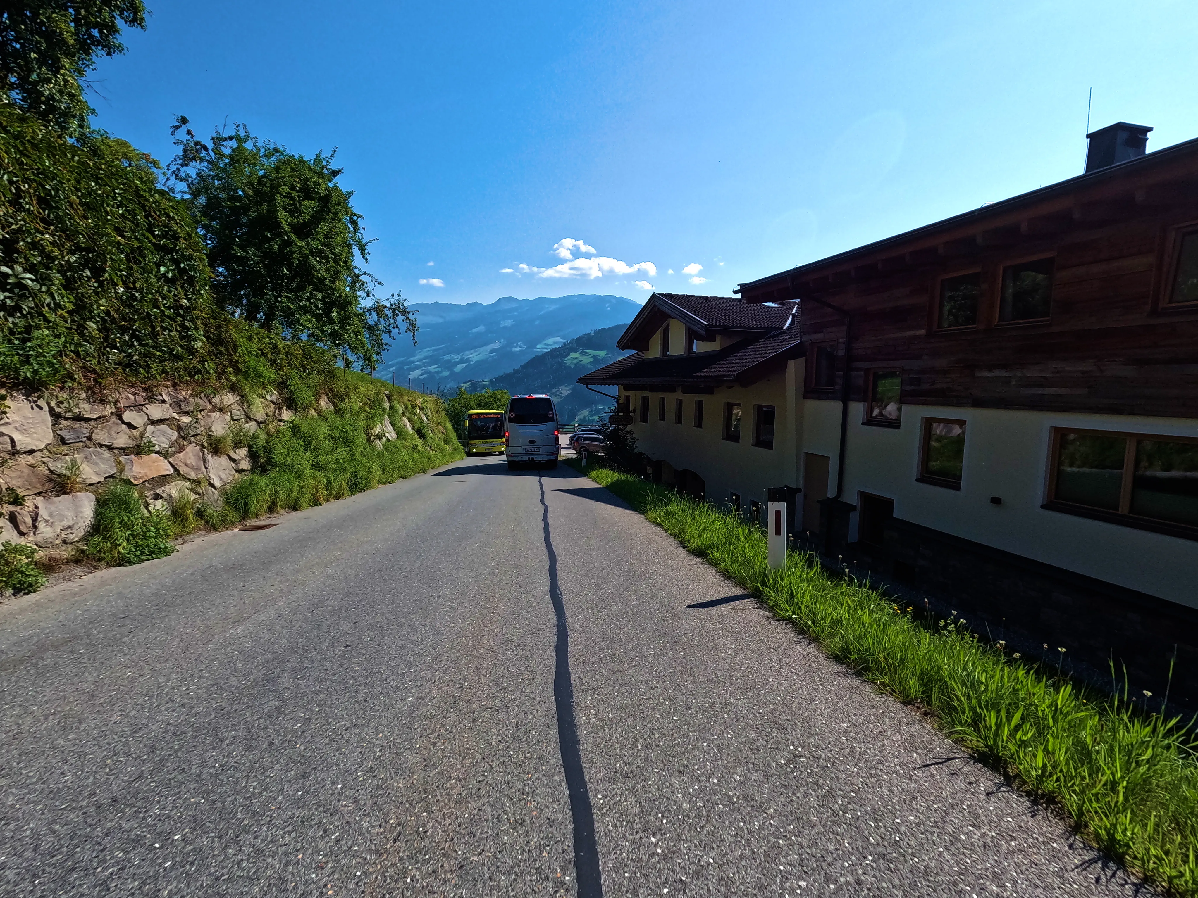 Nachdem ich die Autobahn verlassen hatte, folgte ich der B173 bis Söll, kurz dahinter wartete auch bereits der erste, unspektakuläre Passknacker-Punkt: »Am Steinerbach / Söll«. Im Anschluss fuhr ich über Itter und Hopfgarten in ruhigere Gebiete, abseits der großen Straßen. Es ging von Hopfgarten aus Richtung Wörgl, allerdings über die angenehm ruhige Strecke über Grafenweg bzw. Niederau. Hier wartete auch der nächste Passknacker, »Grafenweg«. Von Wörgl aus ging es über die B171 nach Brixlegg und Reith im Alpbachtal, wo ich nach der verkehrsreichen B171 wieder etwas weniger stark befahrene Wege nutzen konnte. Auf dem Weg nach Hart im Zillertal wartete neben sensationellen Aussichten auch noch der dritte Passknacker-Punkt des Tages: »Kerschbaumer Sattel«.