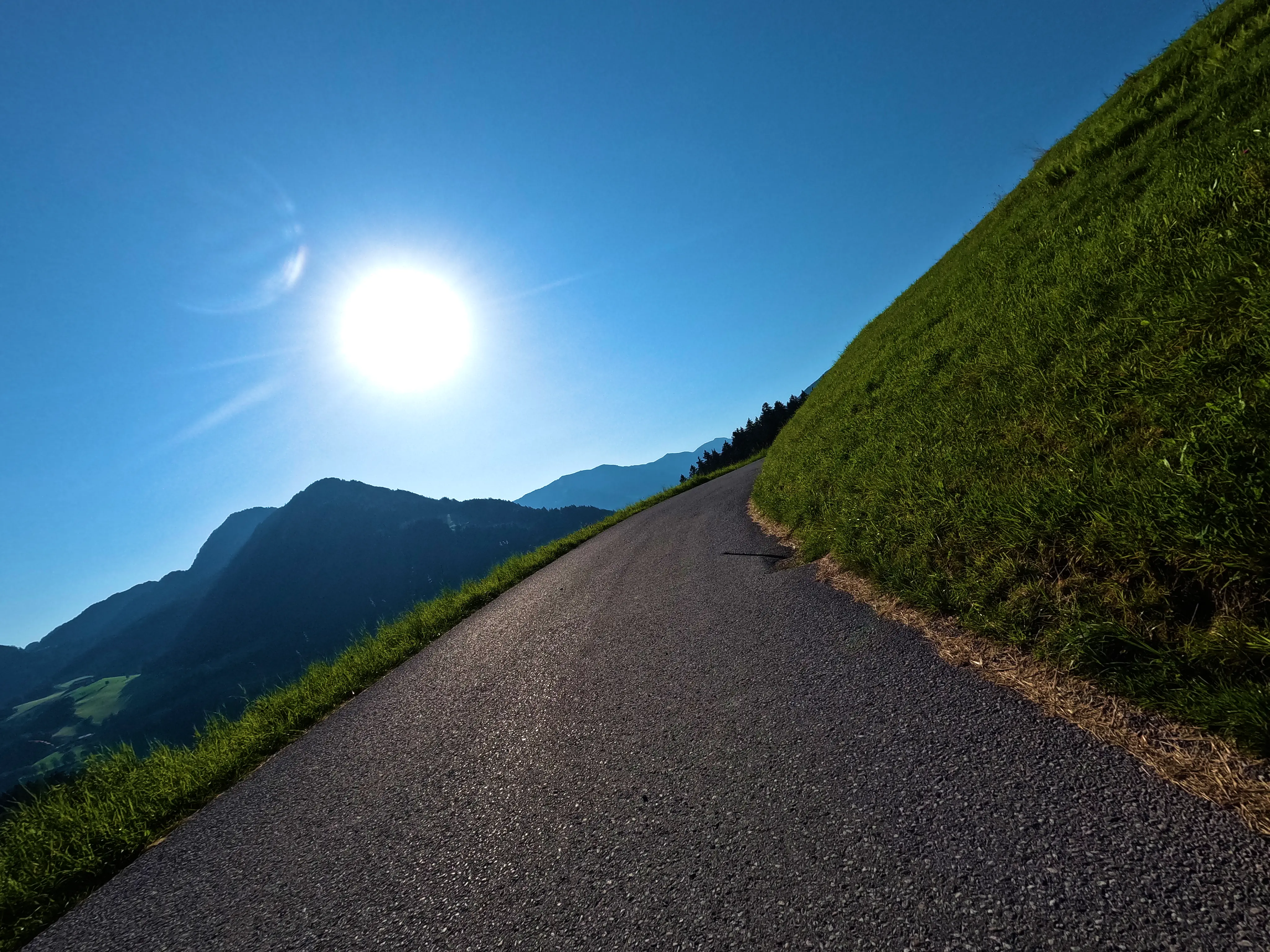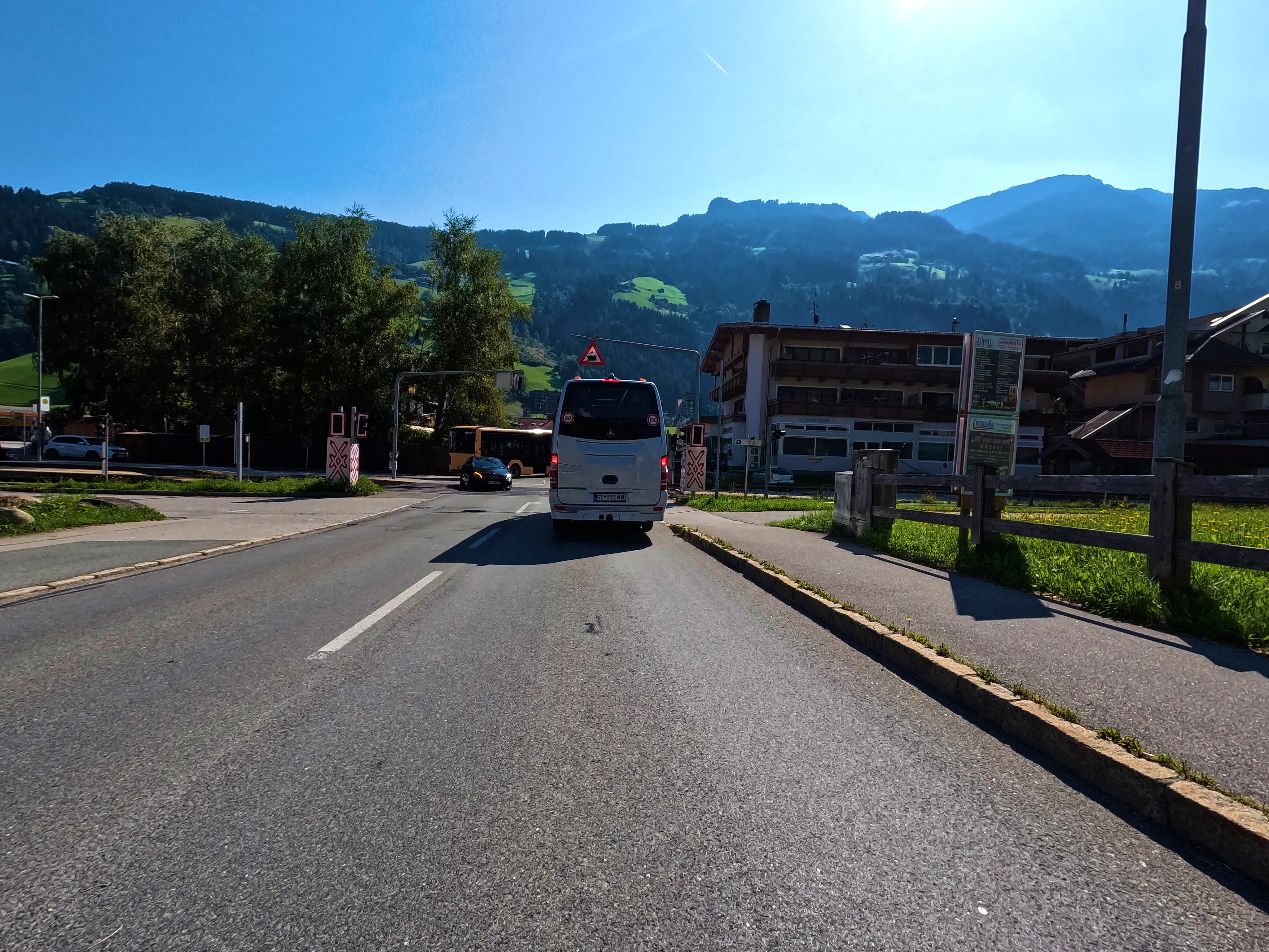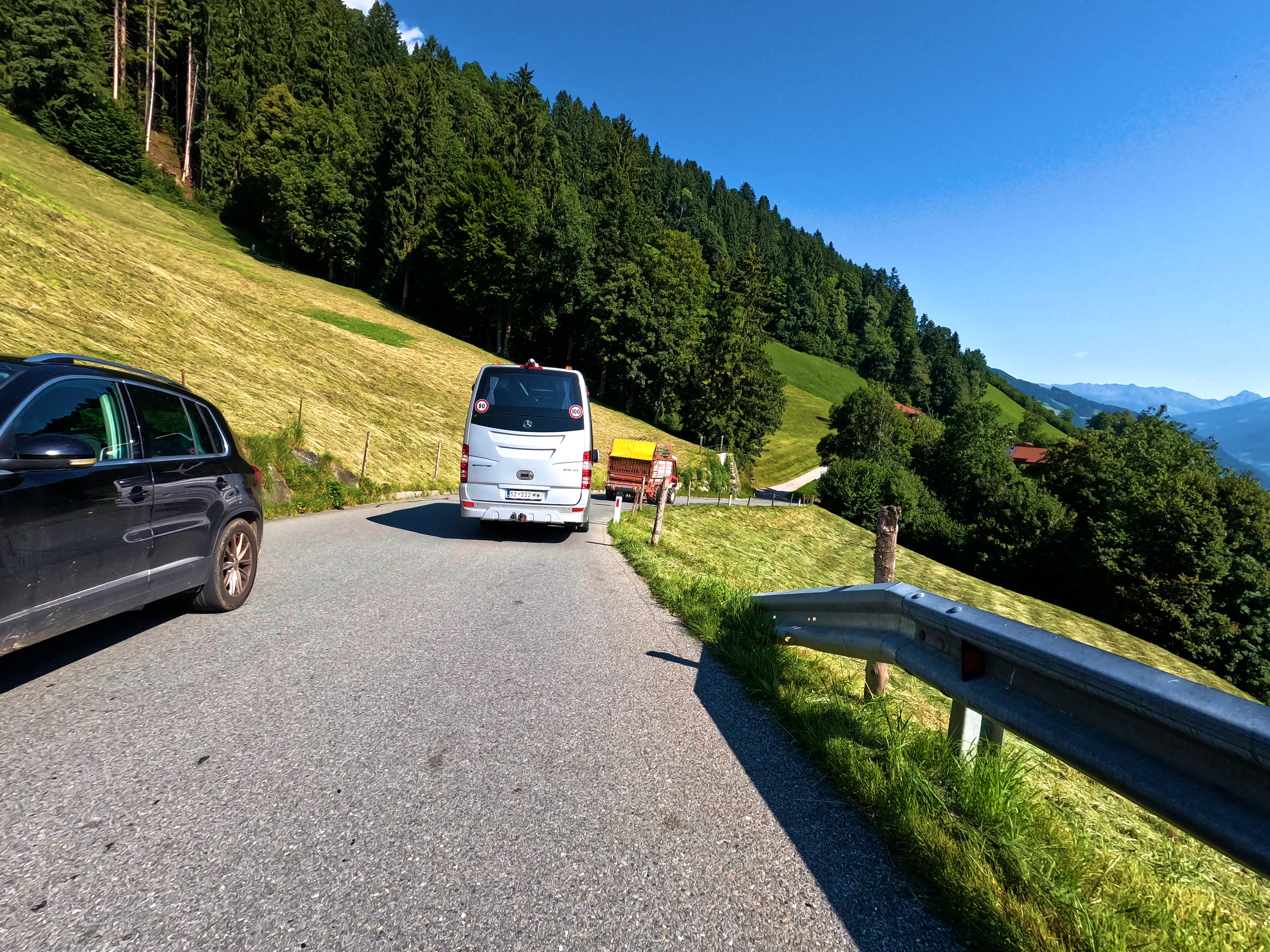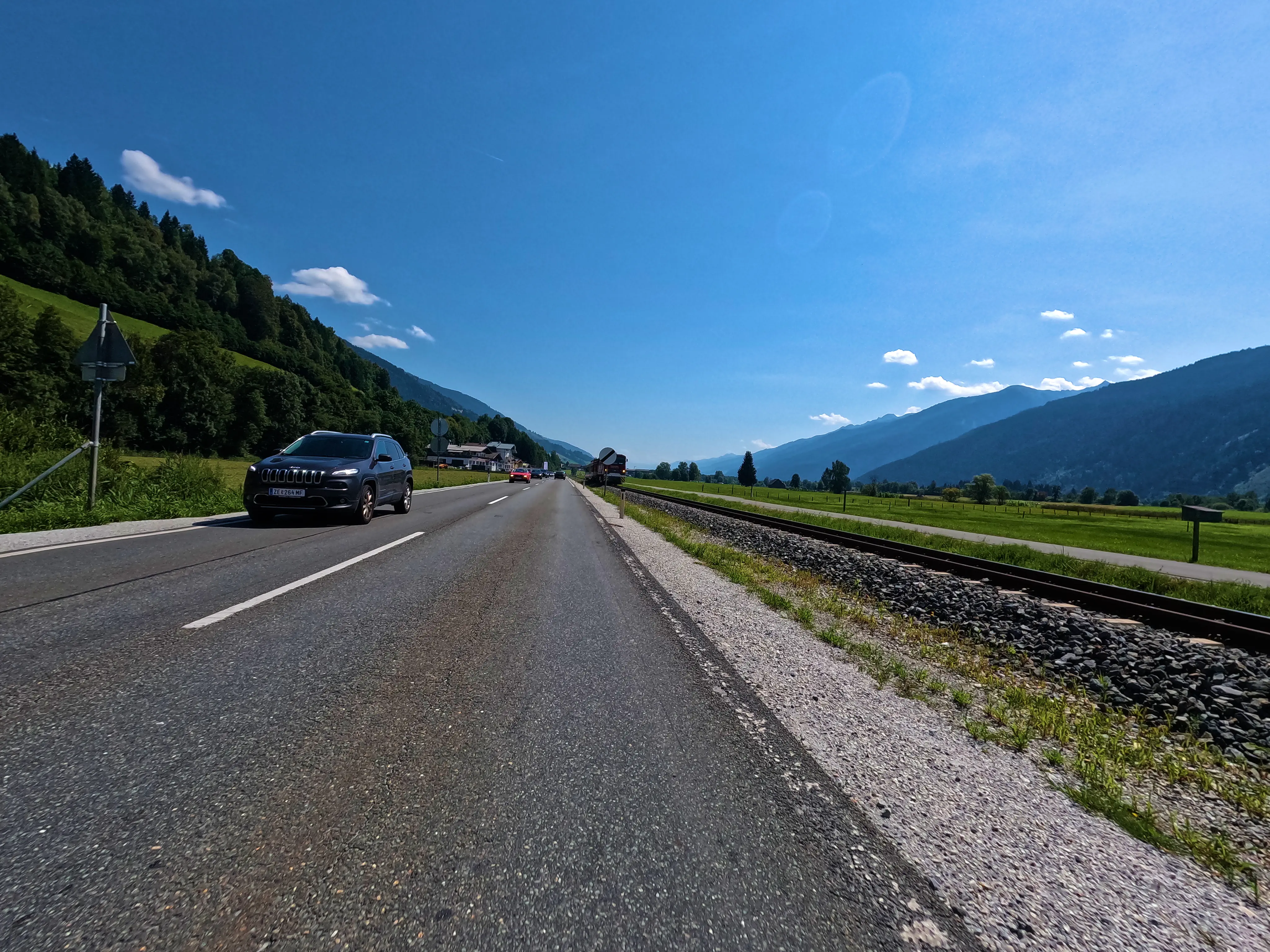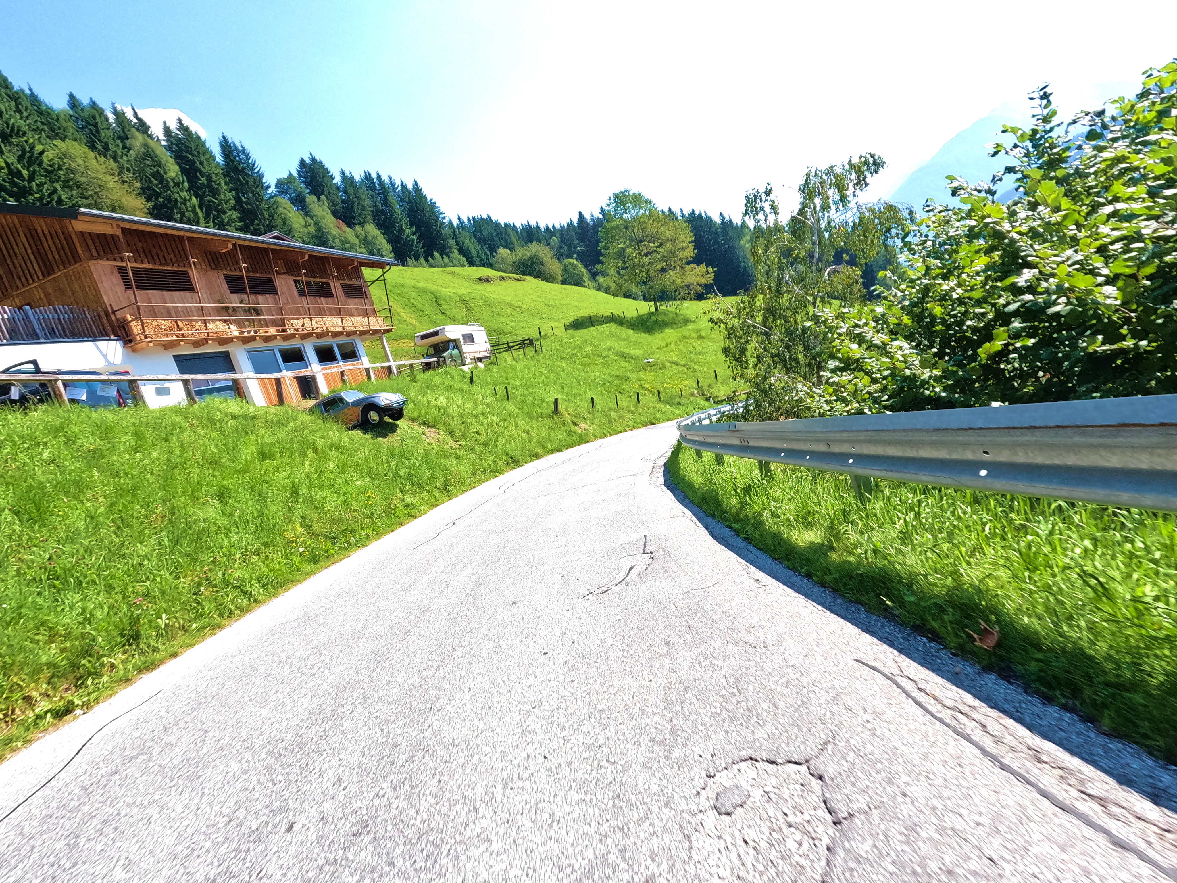 Nachdem ich die Autobahn verlassen hatte, folgte ich der B173 bis Söll, kurz dahinter wartete auch bereits der erste, unspektakuläre Passknacker-Punkt: »Am Steinerbach / Söll«. Im Anschluss fuhr ich über Itter und Hopfgarten in ruhigere Gebiete, abseits der großen Straßen. Es ging von Hopfgarten aus Richtung Wörgl, allerdings über die angenehm ruhige Strecke über Grafenweg bzw. Niederau. Hier wartete auch der nächste Passknacker, »Grafenweg«. Von Wörgl aus ging es über die B171 nach Brixlegg und Reith im Alpbachtal, wo ich nach der verkehrsreichen B171 wieder etwas weniger stark befahrene Wege nutzen konnte. Auf dem Weg nach Hart im Zillertal wartete neben sensationellen Aussichten auch noch der dritte Passknacker-Punkt des Tages: »Kerschbaumer Sattel«.