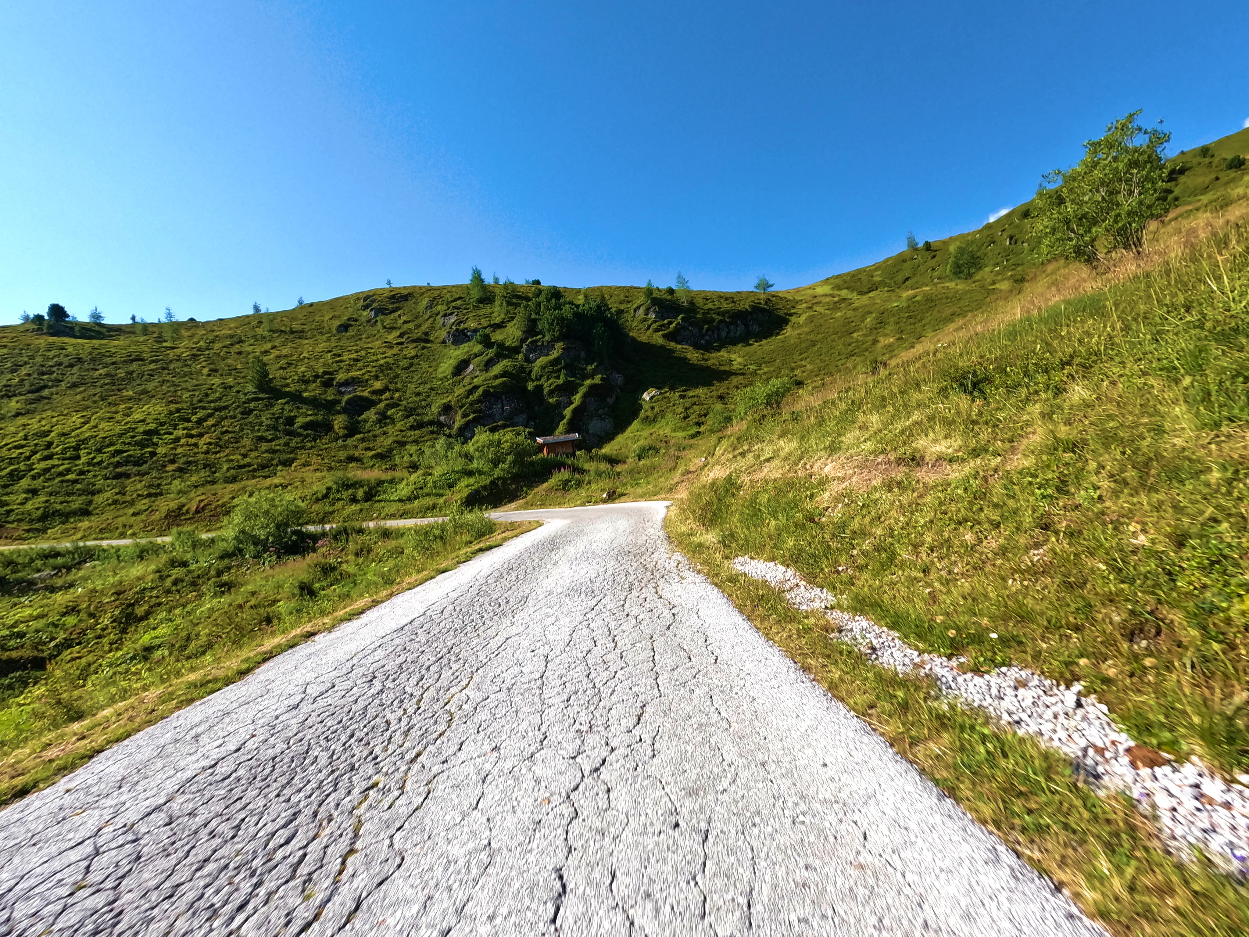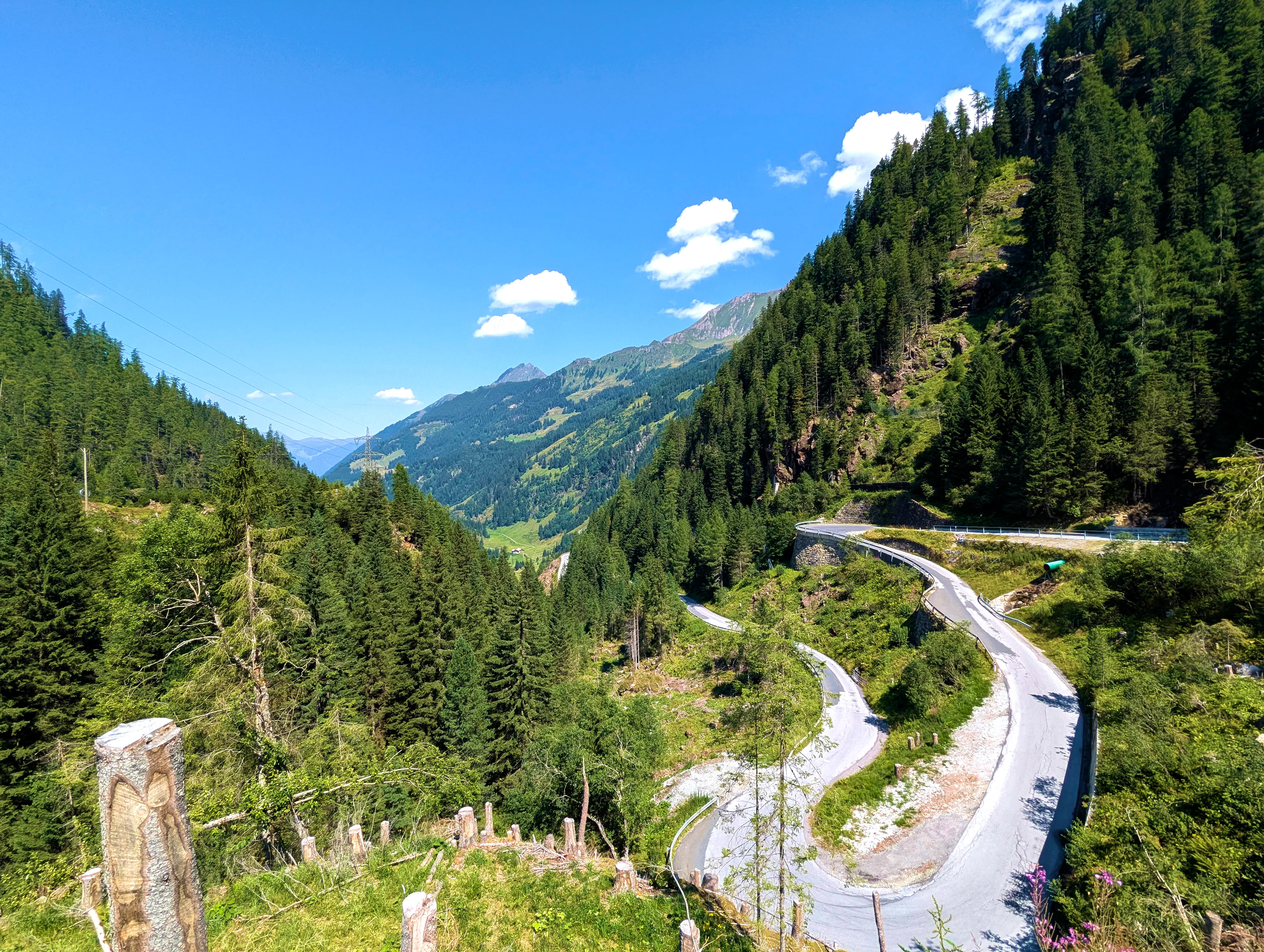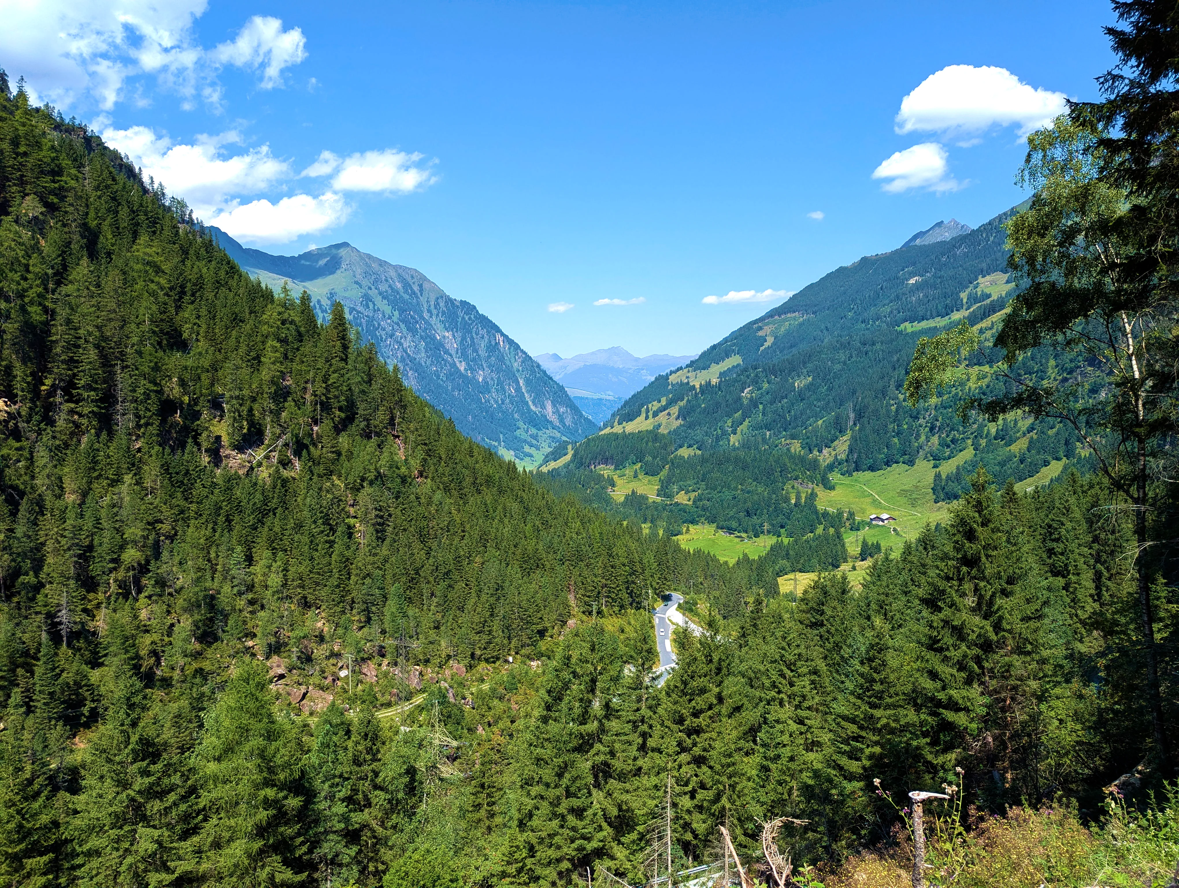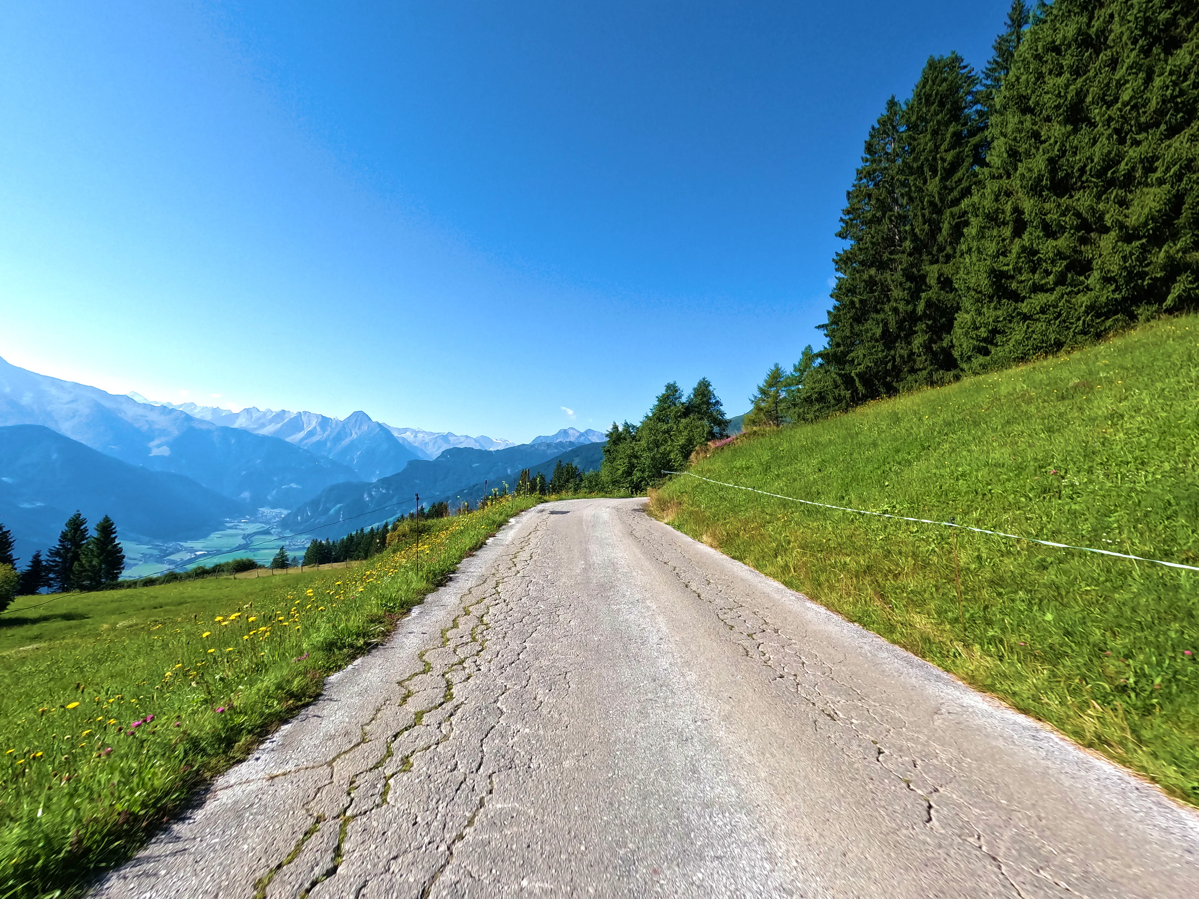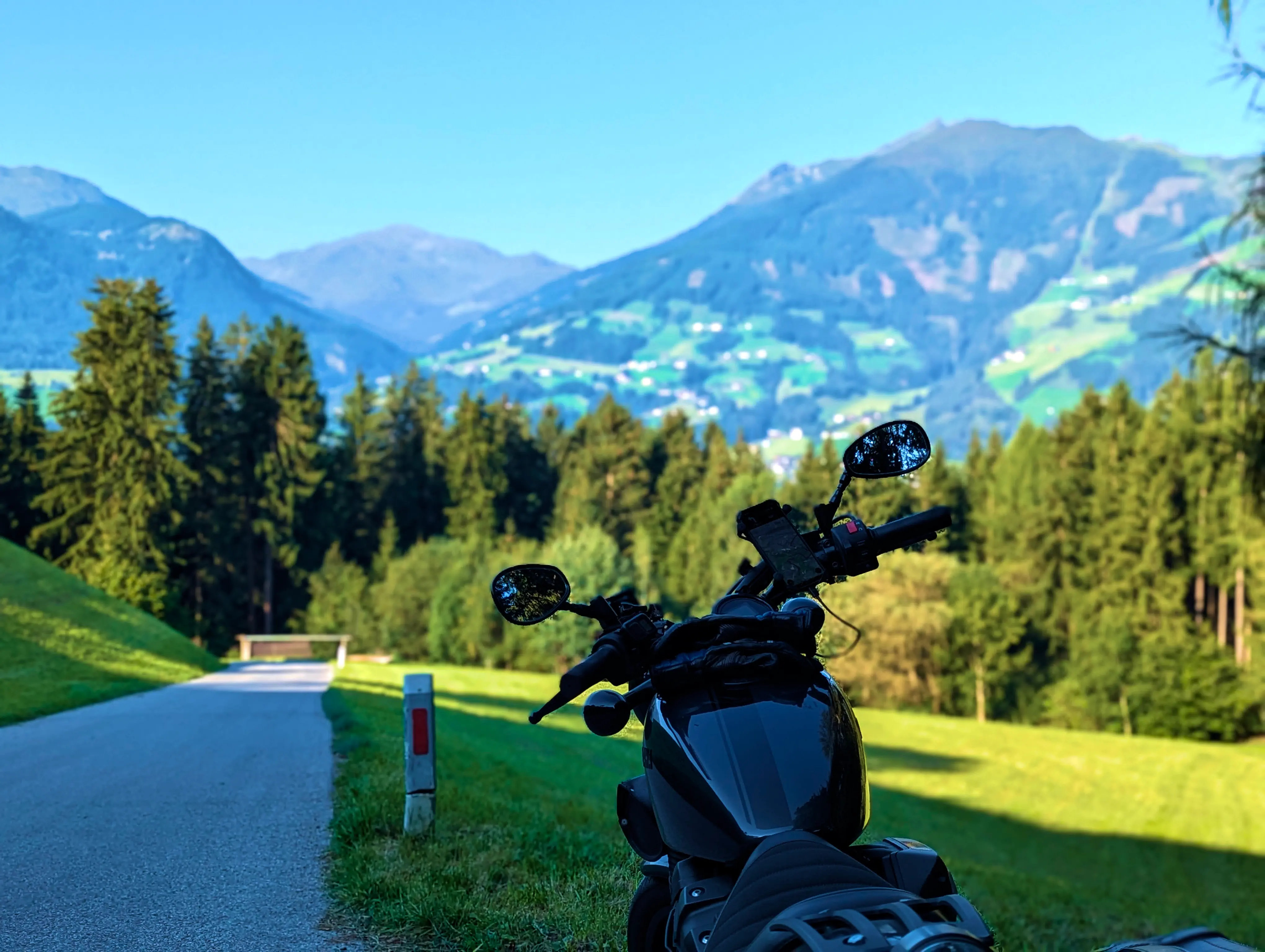 Nun stand mir wieder eine etwas stärker befahrene Etappe bevor. Bei Fügen bog ich auf die B169 Richtung Süden durch das Zillertal ein, verließ diese aber nach einem Tankstopp und zehn Kilometer später bereits wieder, als ich in Aschau im Zillertal zur Auffahrt zur Zillertaler Höhenstraße abbog. Die Zillertaler Höhenstraße war wie immer ein Highlight. Toller Aussichten, schmale Wege, eigentlich hätte ich alle 100 Meter anhalten können, um ein paar Fotos zu machen. Das Wetter an diesem Samstag tat sein übriges: Strahlend blauer Himmel, am Horizont ein paar wenige weiße Wölkchen, angenehm sommerliche Temperatur. Traumhaft! Am Melchboden hielt ich an, um das vierte Nachweisbild dieses Tages auf meinem Telefon zu speichern. Um kurz vor 10 Uhr war hier noch nicht besonders viel los, ich fuhr dennoch zügig weiter. Die letzten Kilometer der Abfahrt nach Hippach hatte ich dann leider einen Bus vor mir, der zwar recht zügig fuhr, dabei teilweise aber doch sehr waghalsige Manöver veranstaltete.