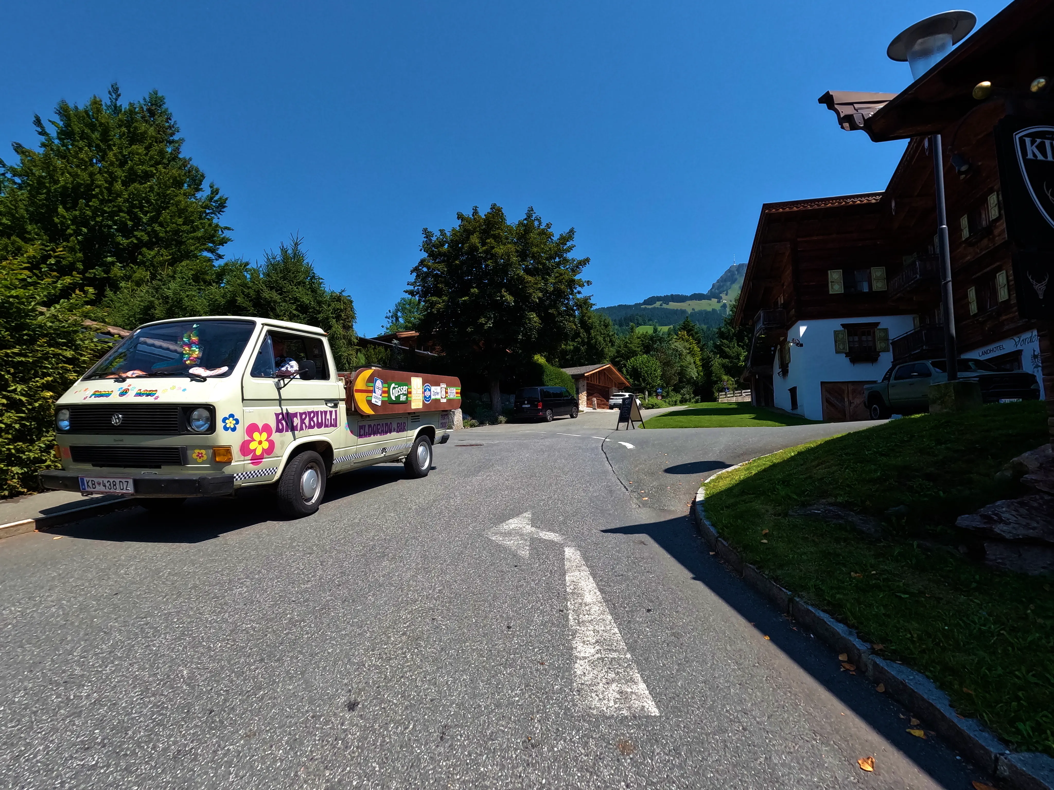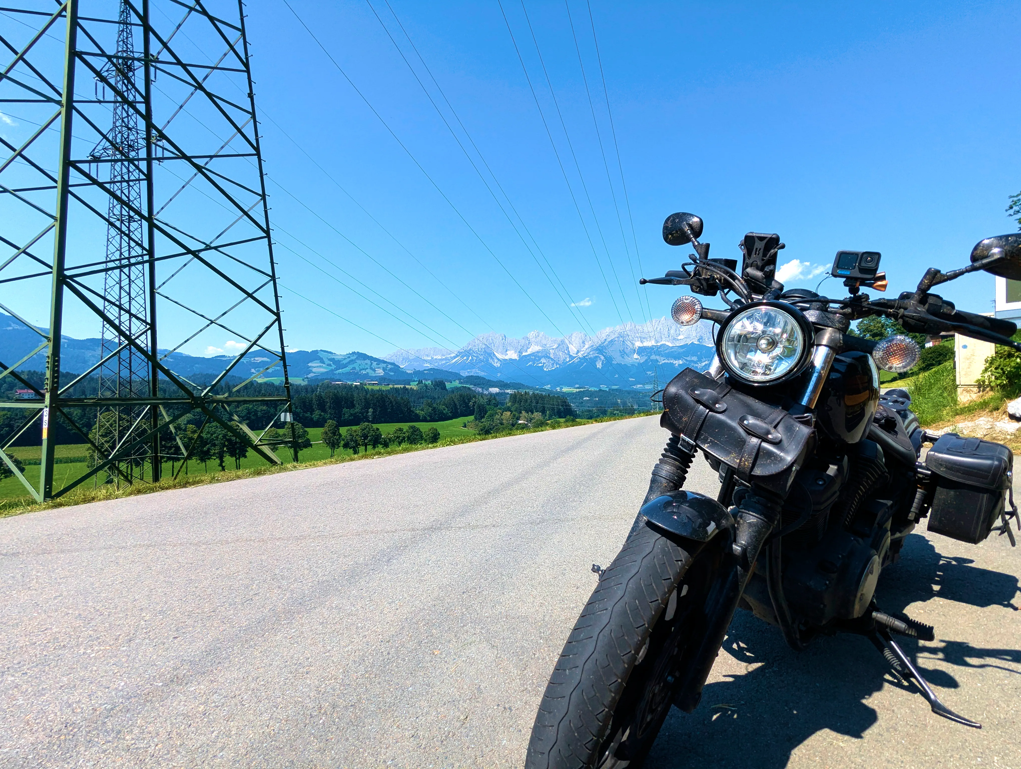 Ich durchquerte Kitzbühel beinahe komplett, um am nördlichen Ende den Abzweig zum Kitzbüheler Horn zu nehmen. Diese Straße ist mautpflichtig und wird gefühlt von Jahr zu Jahr teurer - dafür ist sie immerhin auch in gutem Zustand. An der (unbemannten) Mautschranke stand bereits eine Gruppe Motorradfahrer. Ich parkte die Bolt und ging ebenfalls zum Zahlautomaten. Normalerweise kann man hier mit Scheinen, Münzen und auch Karten zahlen, Kartenzahlung war an diesem Tag jedoch nicht verfügbar. Die Scheinzahlung stand so lange zur Verfügung, bis der Automat einen Schein der Motorradgruppe vor mir »gefressen« hatte, nun gab es einen Fehler, der gute Mann bekam keinen Chip zur Durchfahrt und der Automat wollte nur noch Münzen haben. Die Gruppe diskutierte, wie es nun weitergehen sollte, ich stellte nach einem Blick in meine Geldbörse fest, dass ich nicht ausreichend Münzgeld dabei hatte - nur Scheine und Karten, aber die wollte der Automat ja an diesem Tag nicht. Ich entschied mich kurzerhand dafür, nicht weiter zu warten - es wurde wärmer, die Herren diskutierten weiter und ich hatte auch ohne das Kitzbüheler Horn einen schönen Tag auf dem Motorrad. Also startete ich die Bolt und fuhr weiter, raus aus Kitzbühel, Richtung Sankt Johann in Tirol.