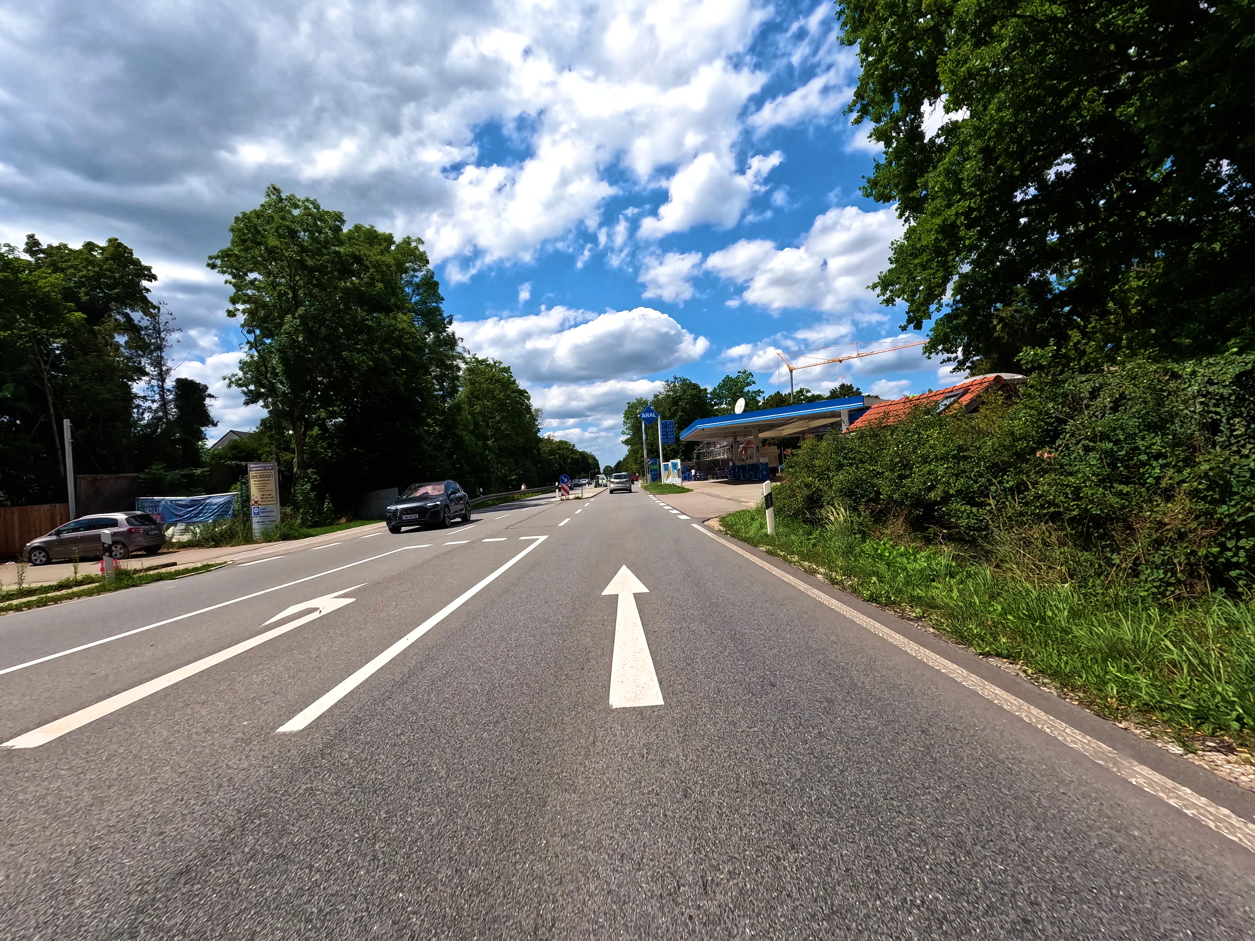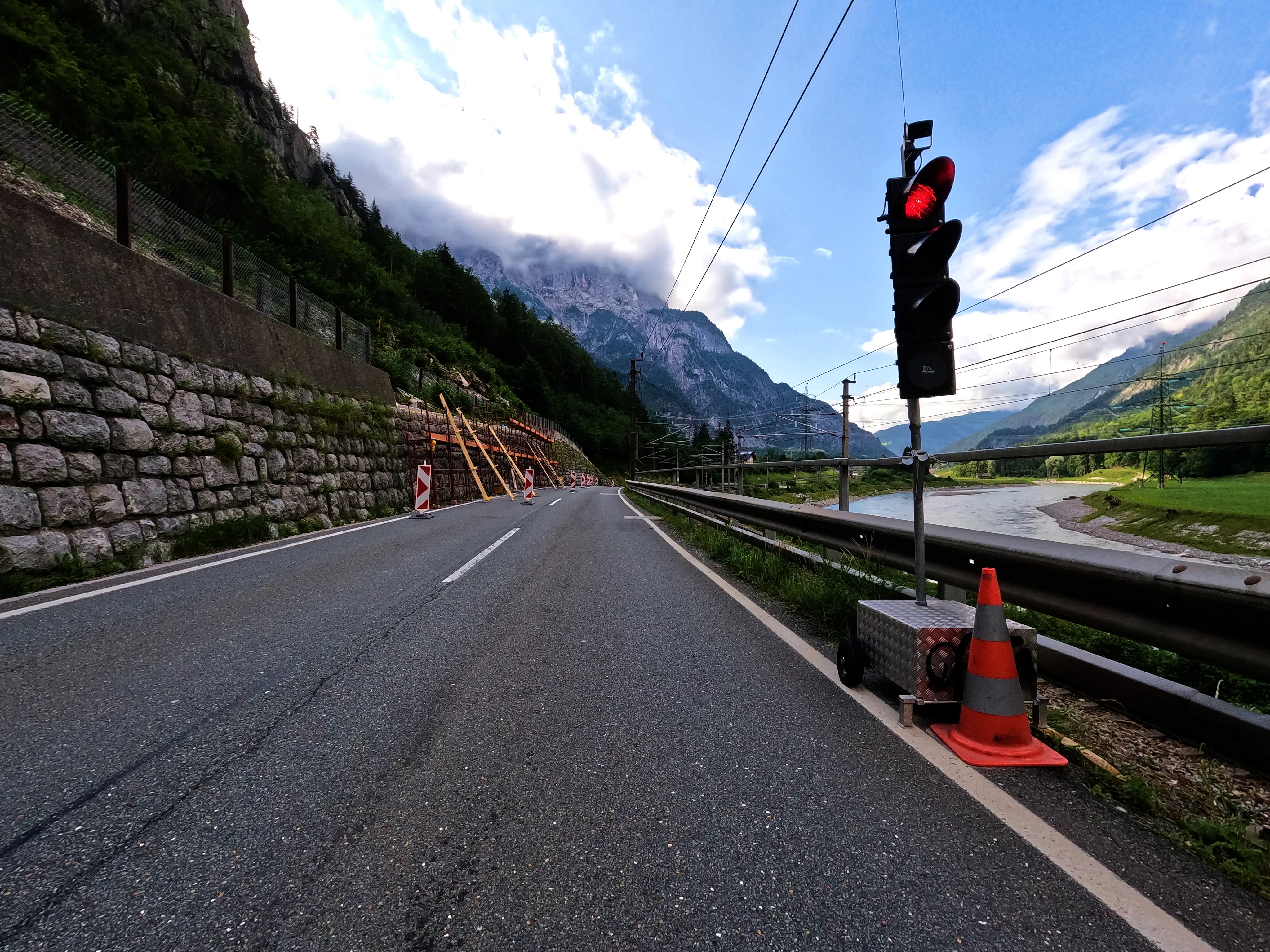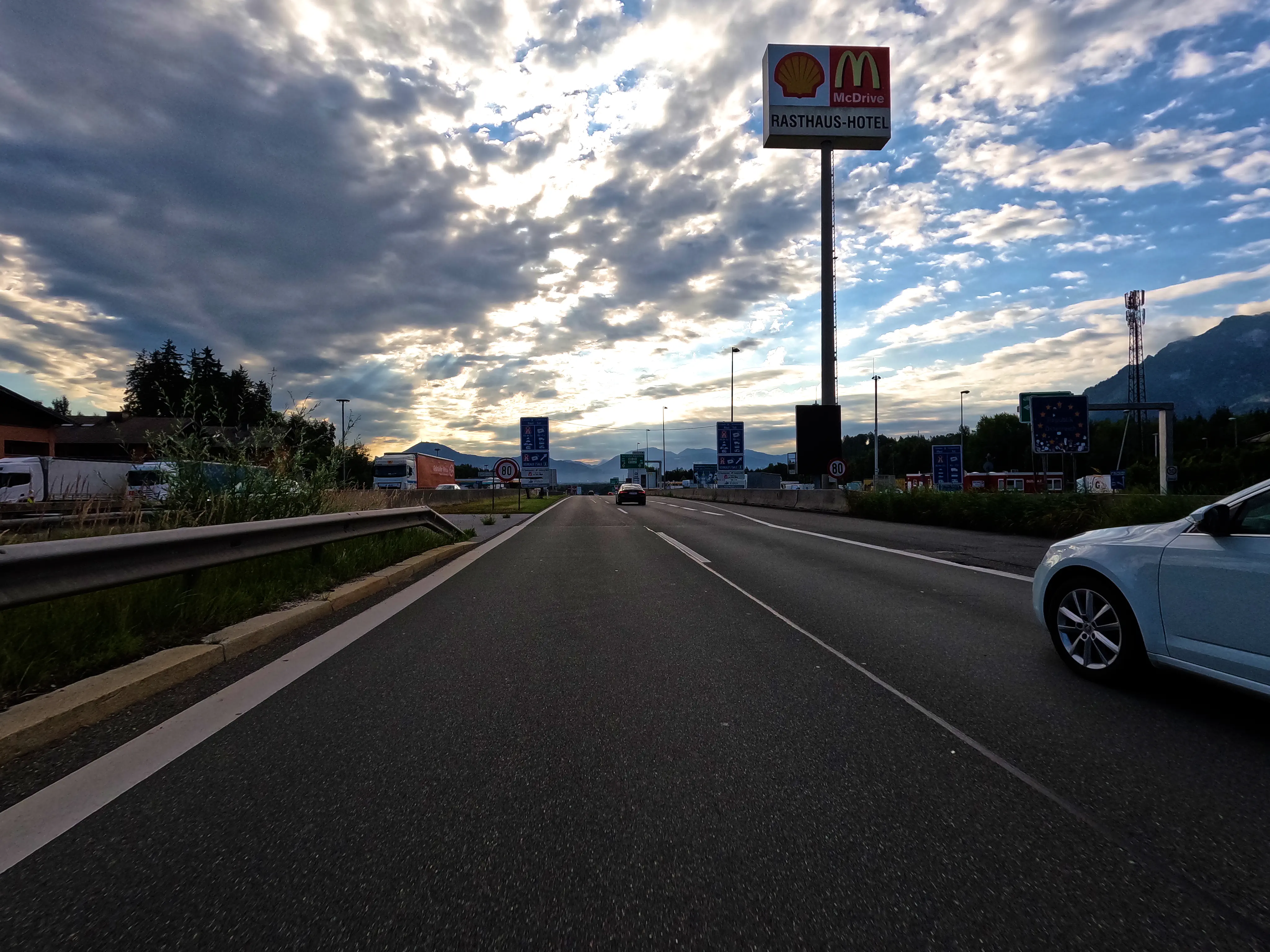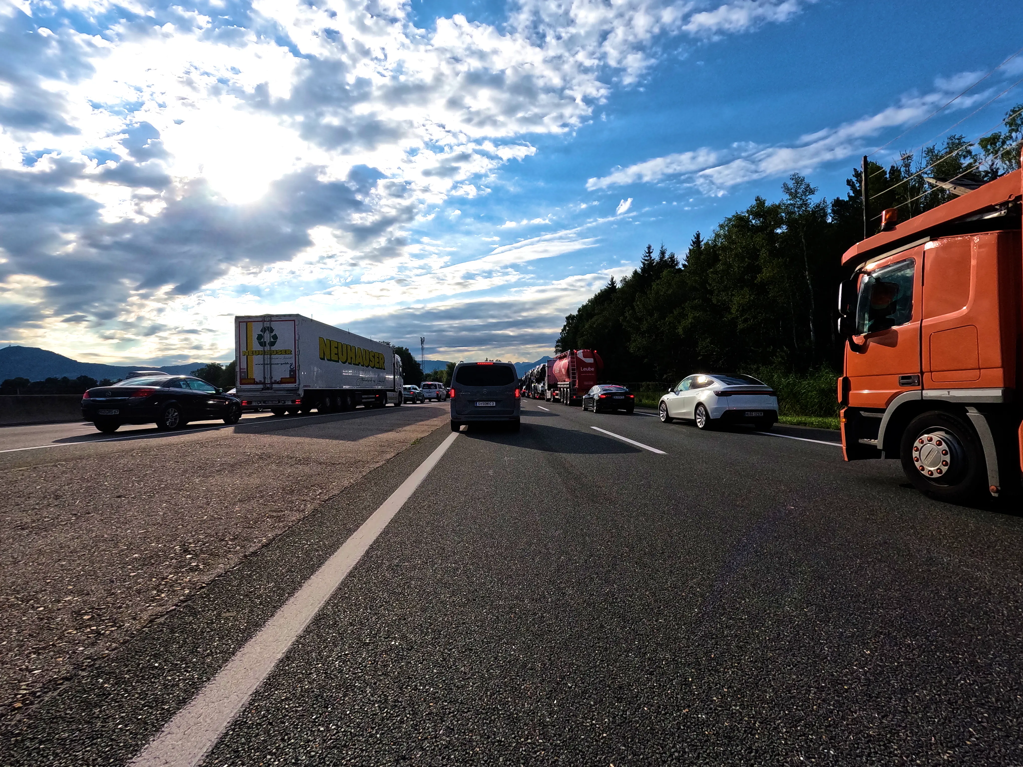 Bei Golling fuhr ich eine Tankstelle an, kurz dafür wurden jedoch noch Fehlstellen im Asphalt eines Kreisverkehrs ausgebessert. Das bremste den Verkehr etwas, die Tankstelle erreichte ich trotzdem.