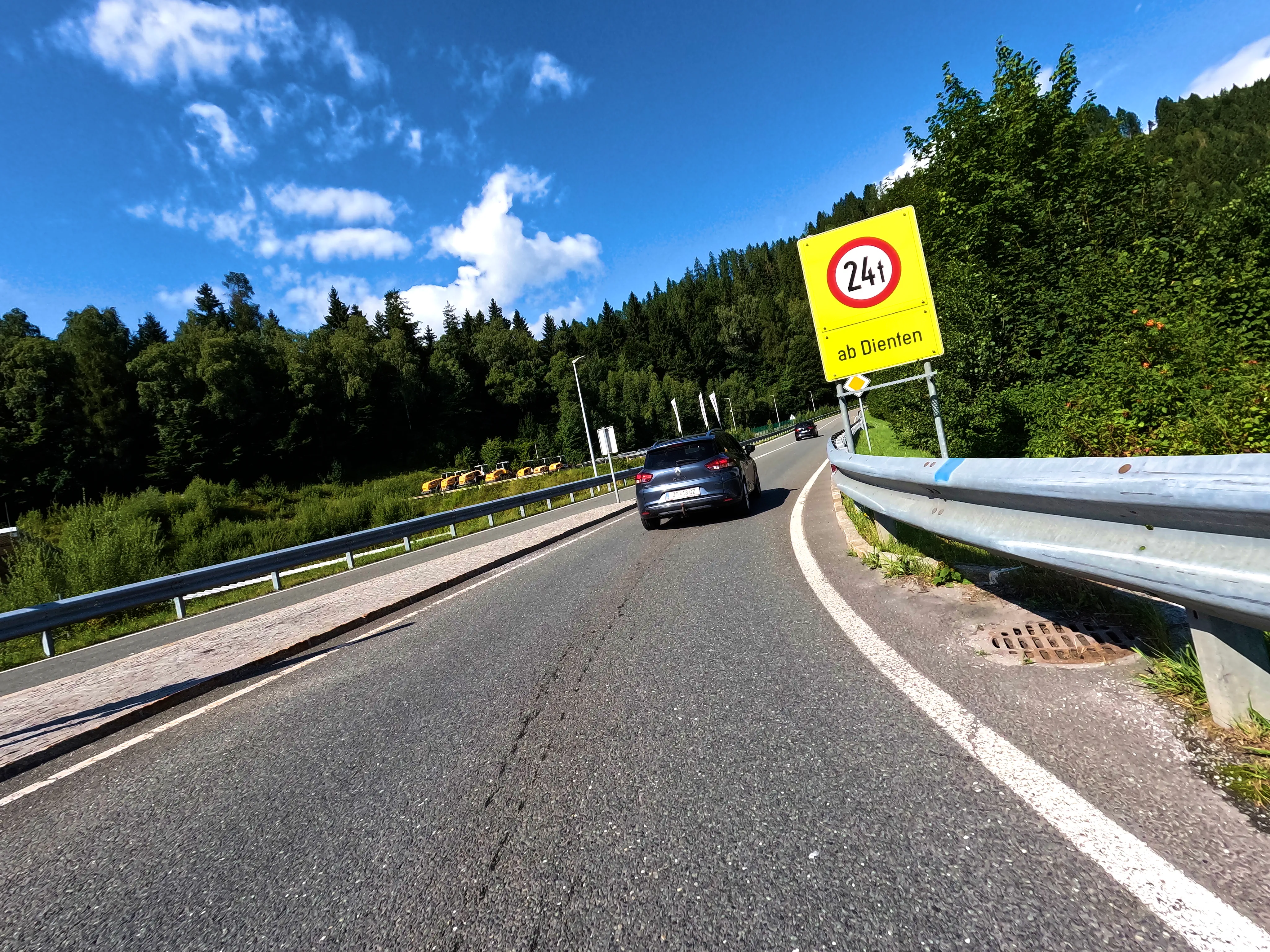 Nachdem ich die Lokomotive am Ortseingang von Bischofshofen passiert hatte, verließ ich den Ort über die B164 bzw. Hochkönigstraße in Richtung meines nächsten Zwischenziels. Nachdem ich an einigen Baustellenampeln gewartet hatte, ging es auch schön kurvig in Richtung des Dientner Sattels. Das Nachweisfoto am Passschild war gemacht, anschließend folgte ich der B164 weiter zum nächsten Ziel - jedoch nicht, ohne noch den ein oder anderen Fotostopp einzulegen. Die Bergwelt an der Hochkönigstraße ist einfach beeindruckend.